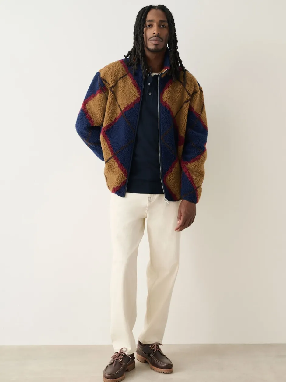 Next Argyle bleu marine/marron fauve – Zippé sur toute la longueur – Polaire imprimée Clearance
