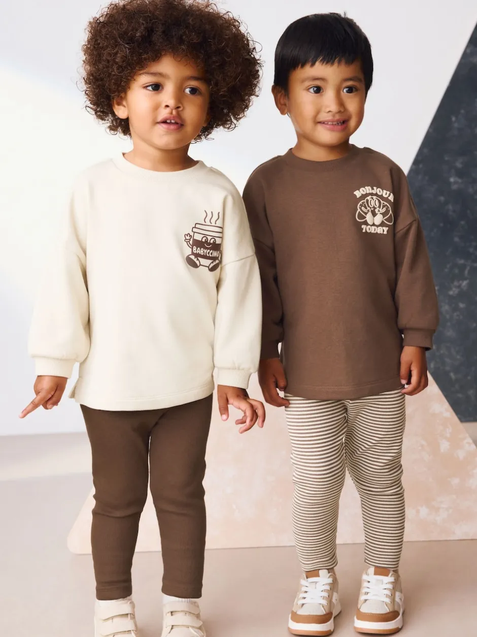 Next Babyccino Marron/Crème – Ensemble haut à manches longues et legging, lot de 2 (3mois -7ans) Discount