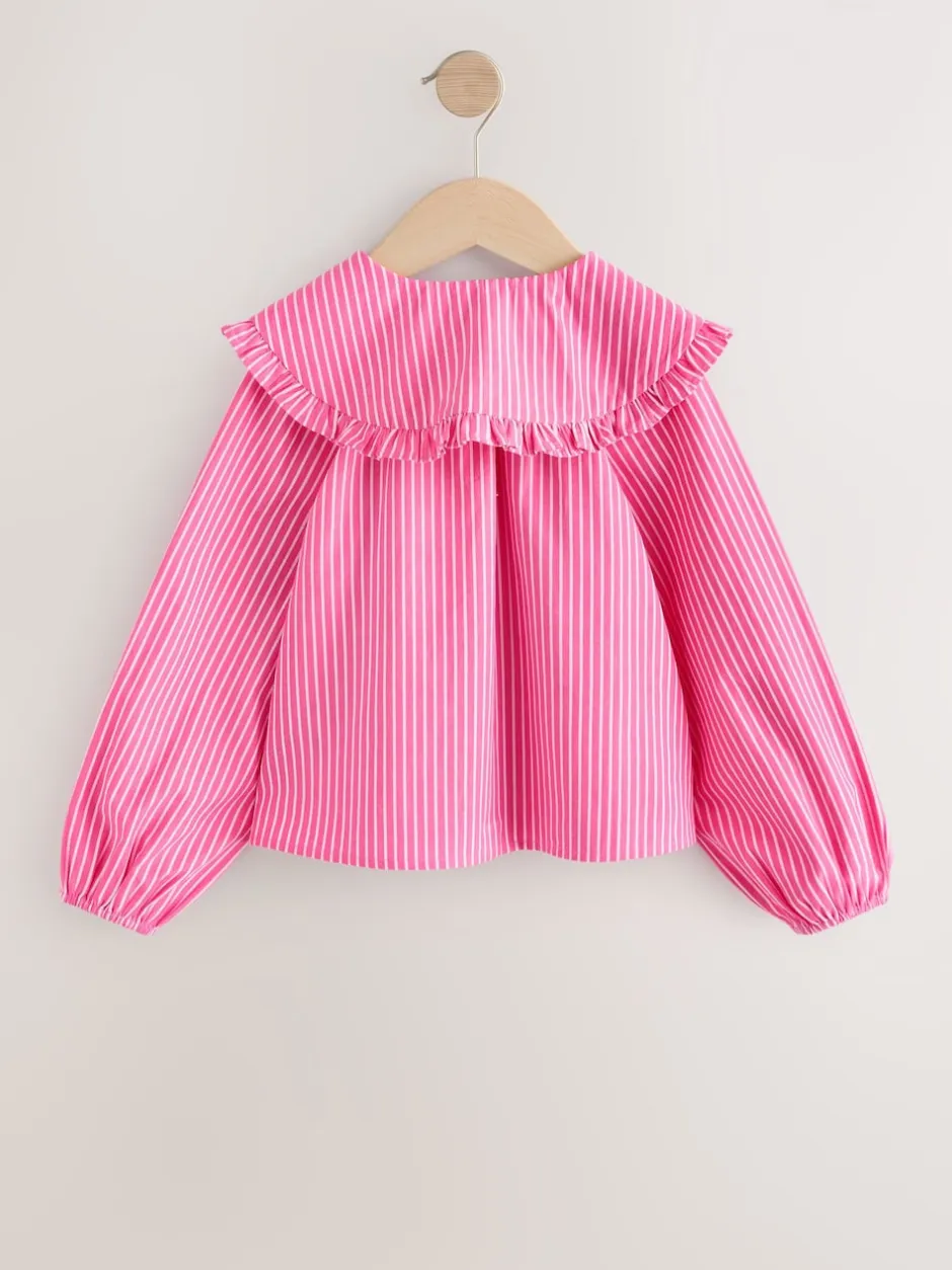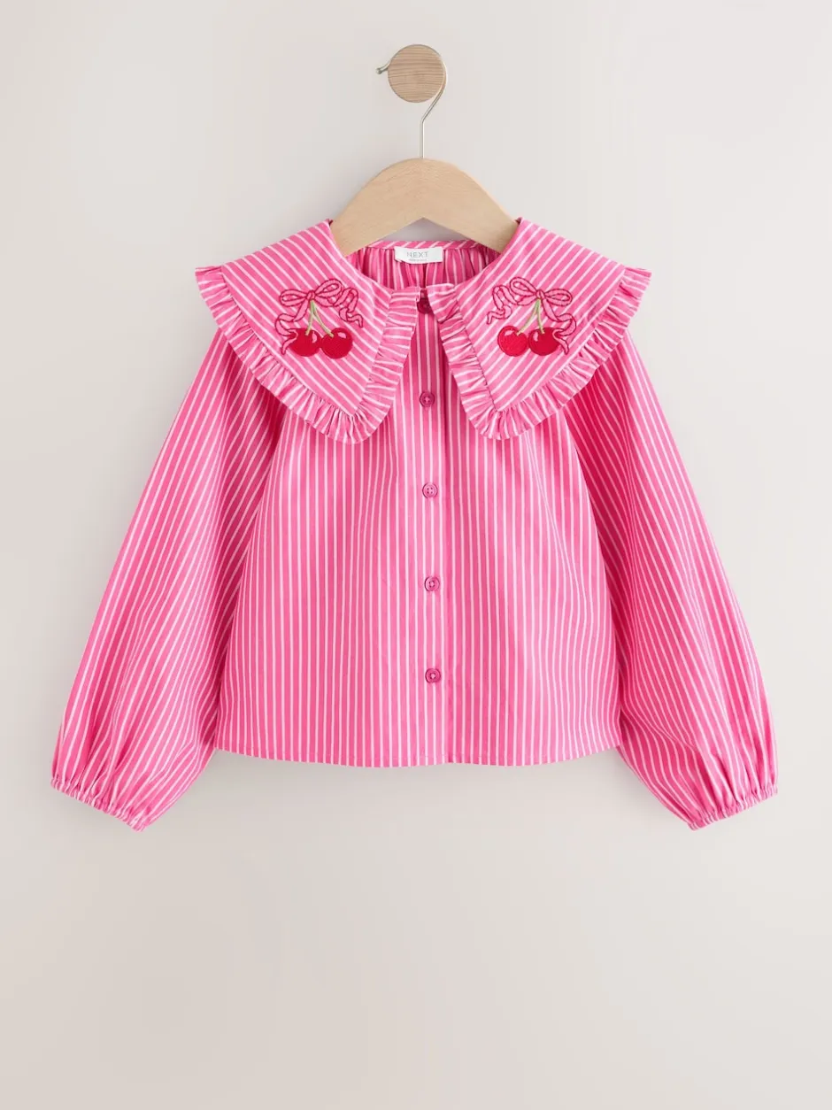 Next Bande rose – Chemisier à manches longues avec col brodé cerise (3-16ans) Discount