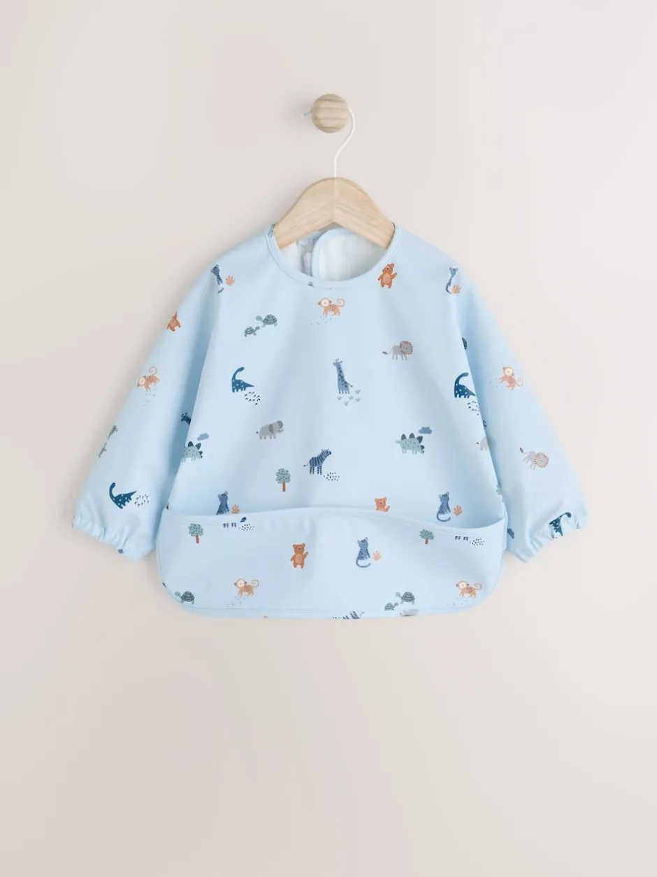 Next – Bavoir à manches de sevrage et d’alimentation Bleu dinosaure motif jungle Hot