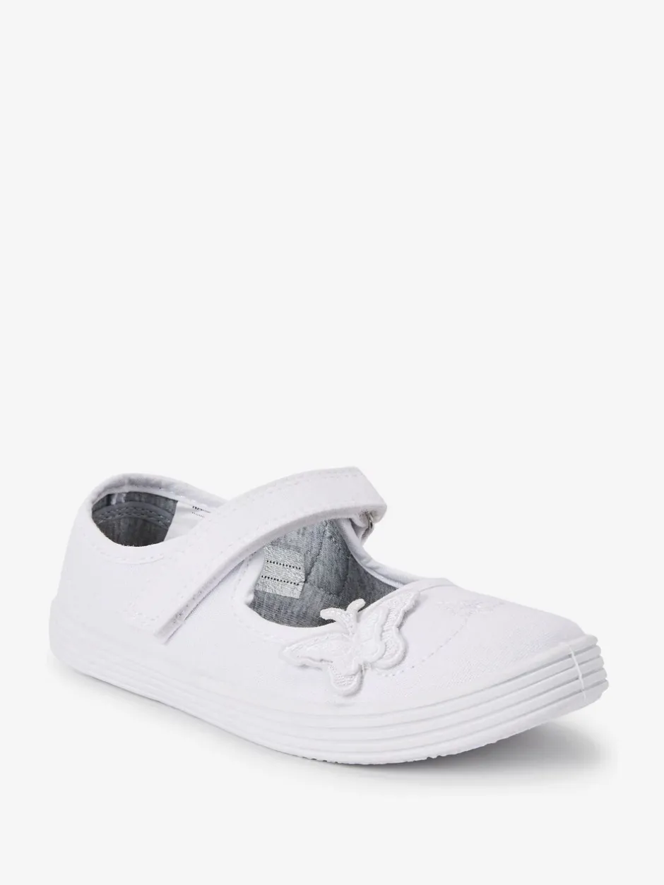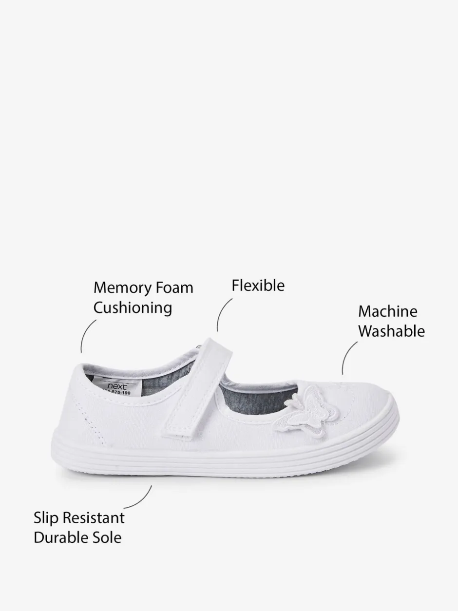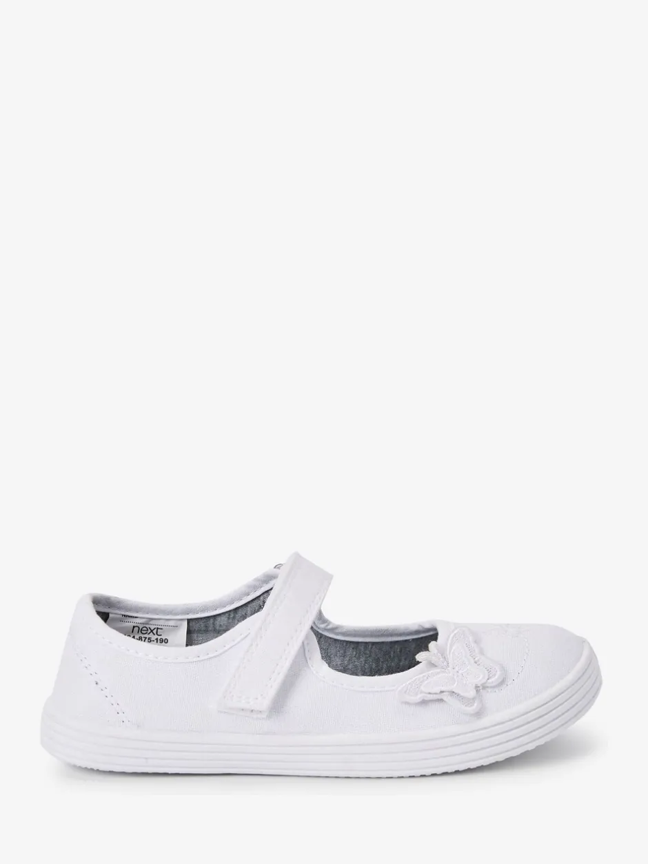 Next Blanc – Butterfly Embroidered School Plimsoll Chaussures Best