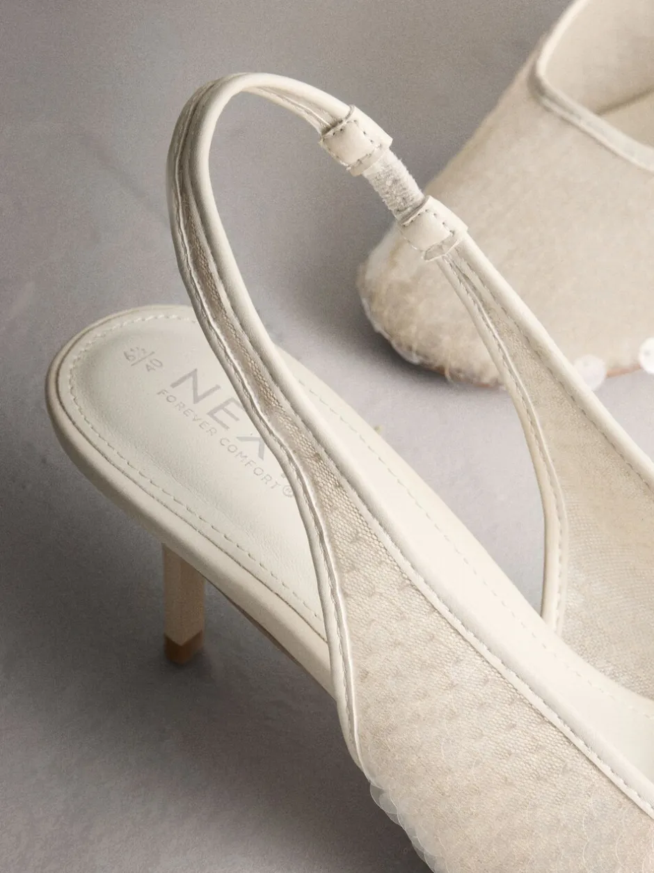 Next Blanc – Chaussures à talons Forever Comfort® à bout rond et à sequins Outlet