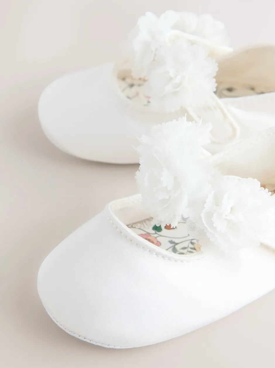 Next Blanc – Chaussures corsage bébé en satin (0-24mois) Clearance