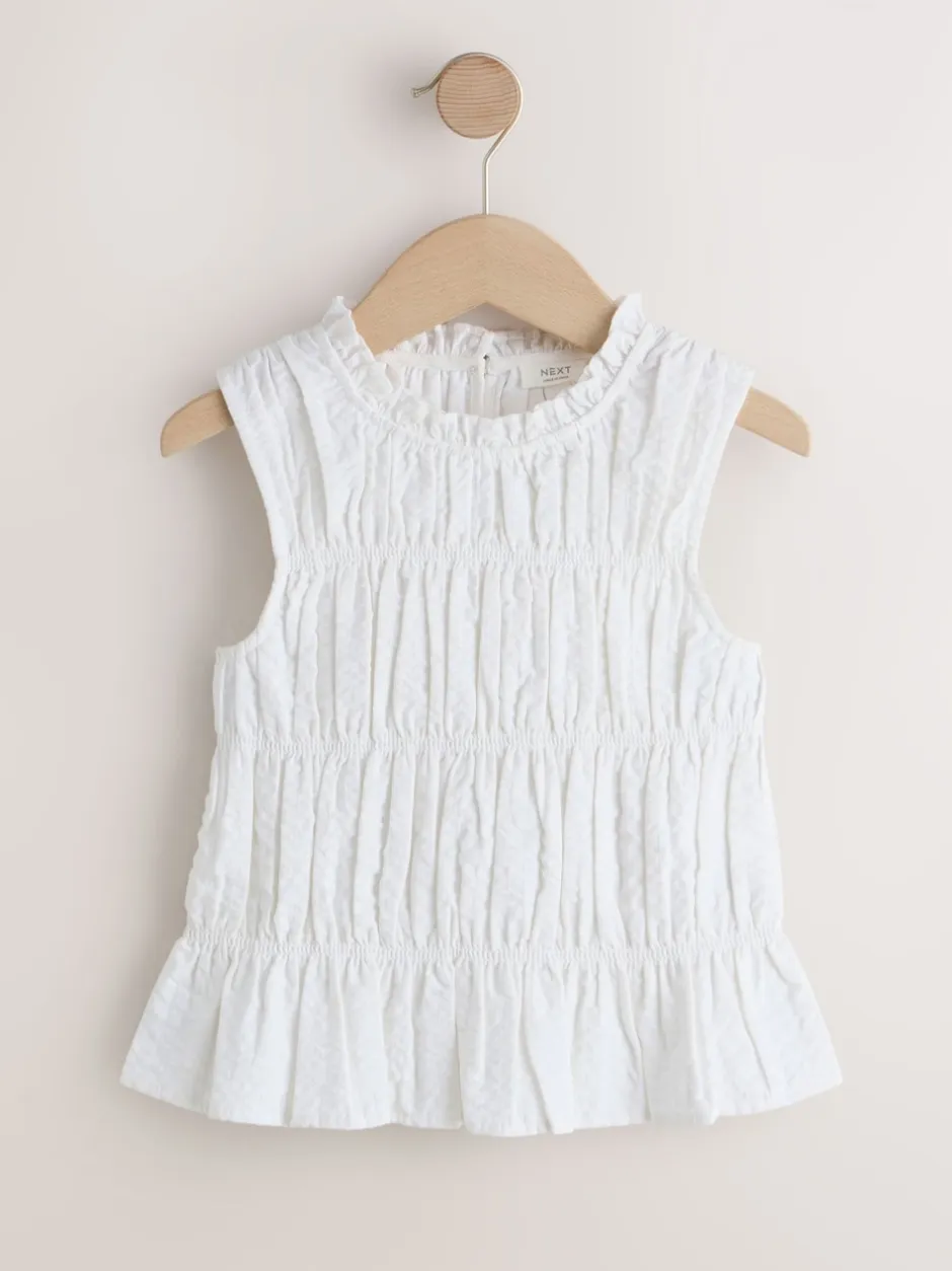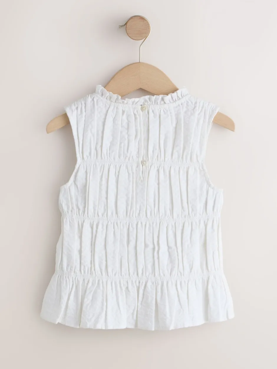 Next Blanc – Chemisier sans manches froncées (3-16ans) Clearance