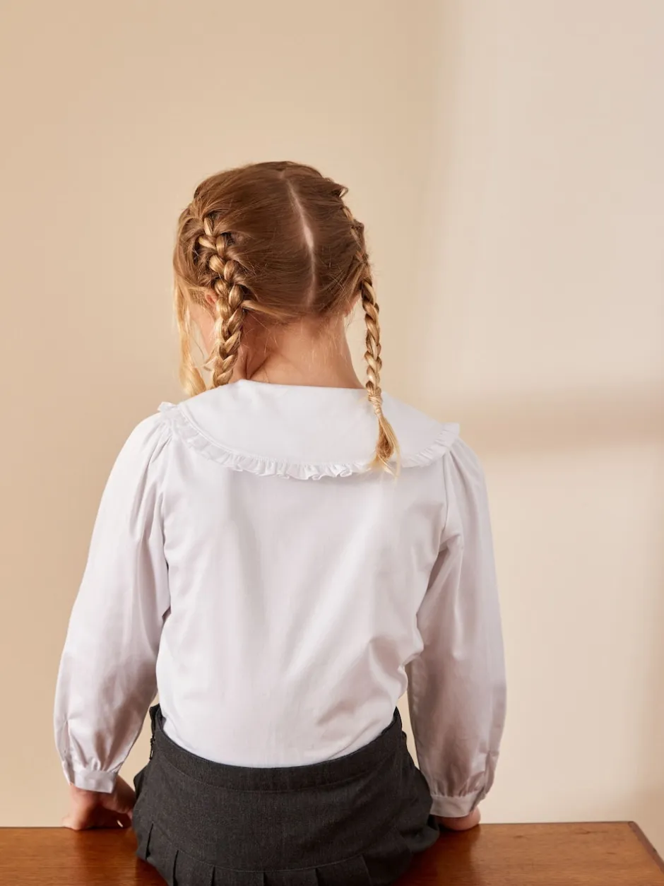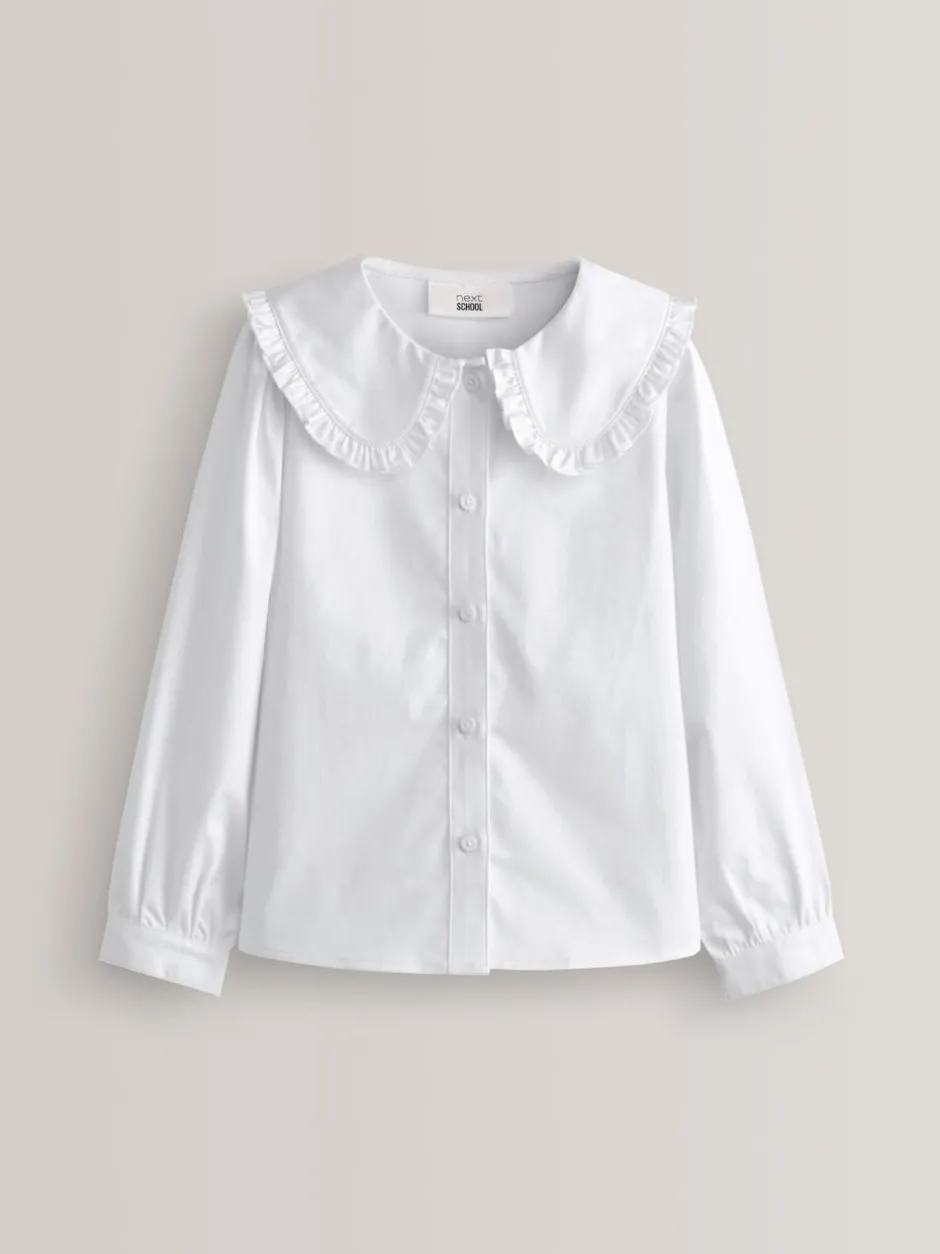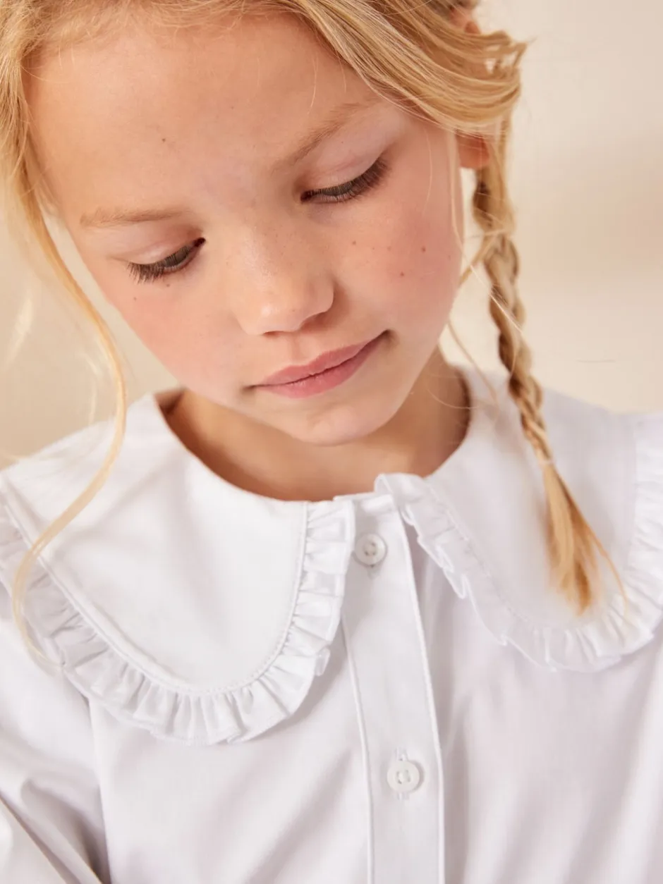 Next Blanc – Chemisier scolaire à manches longues en coton extensible haut de gamme à volants (3-14ans) Online