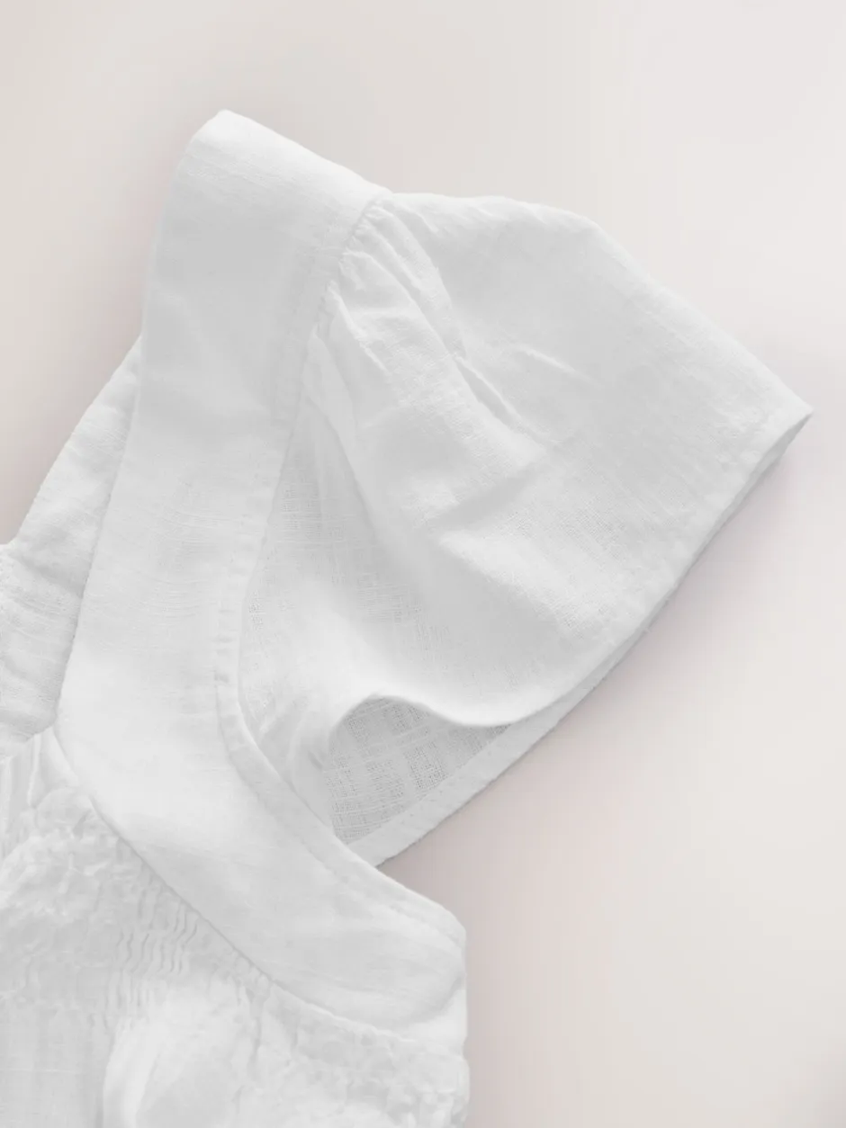 Next Blanc – Haut boutonné à manches évasées avec lin Hot