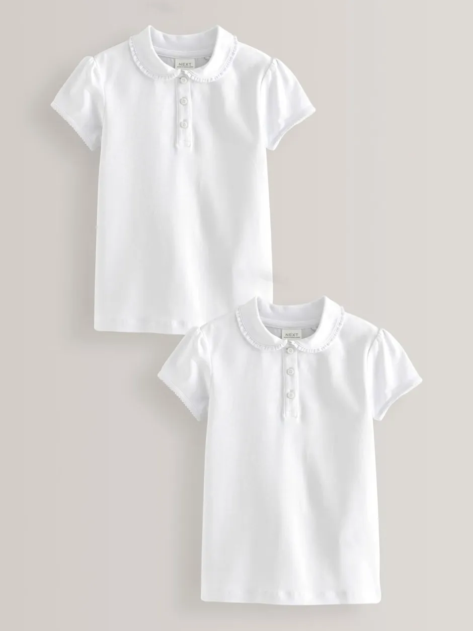 Next Blanc – Lot de 2 polos en coton extensible à col volanté pour l’école (3-16ans) Online