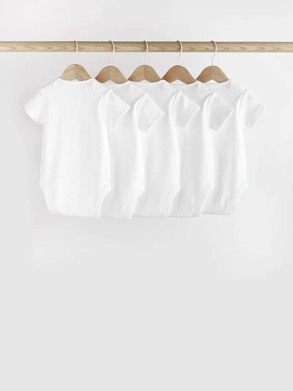 Next Blanc – Lot de 5 bodys côtelés à manches courtes pour bébé Discount