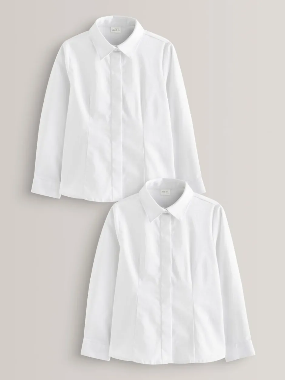 Next Blanc – Paquet de 2 chemises d’écolier à manches longues en coton riche extensible (3-18ans) Discount