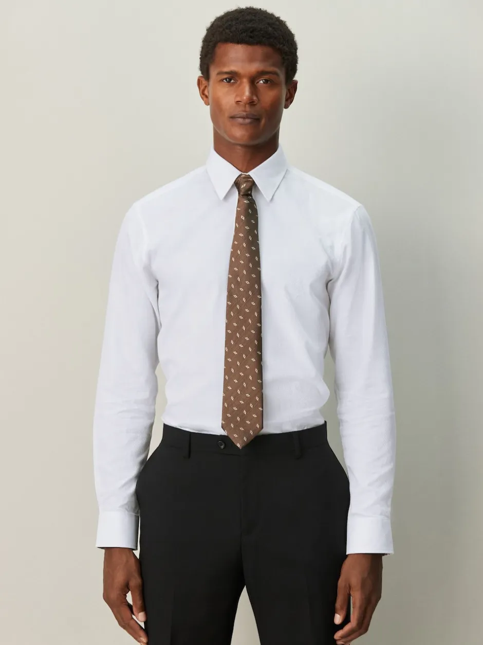 Next Blanc – Slim Fit (Slim Fit) – Chemise habillée texturée à manches longues avec bordure Online