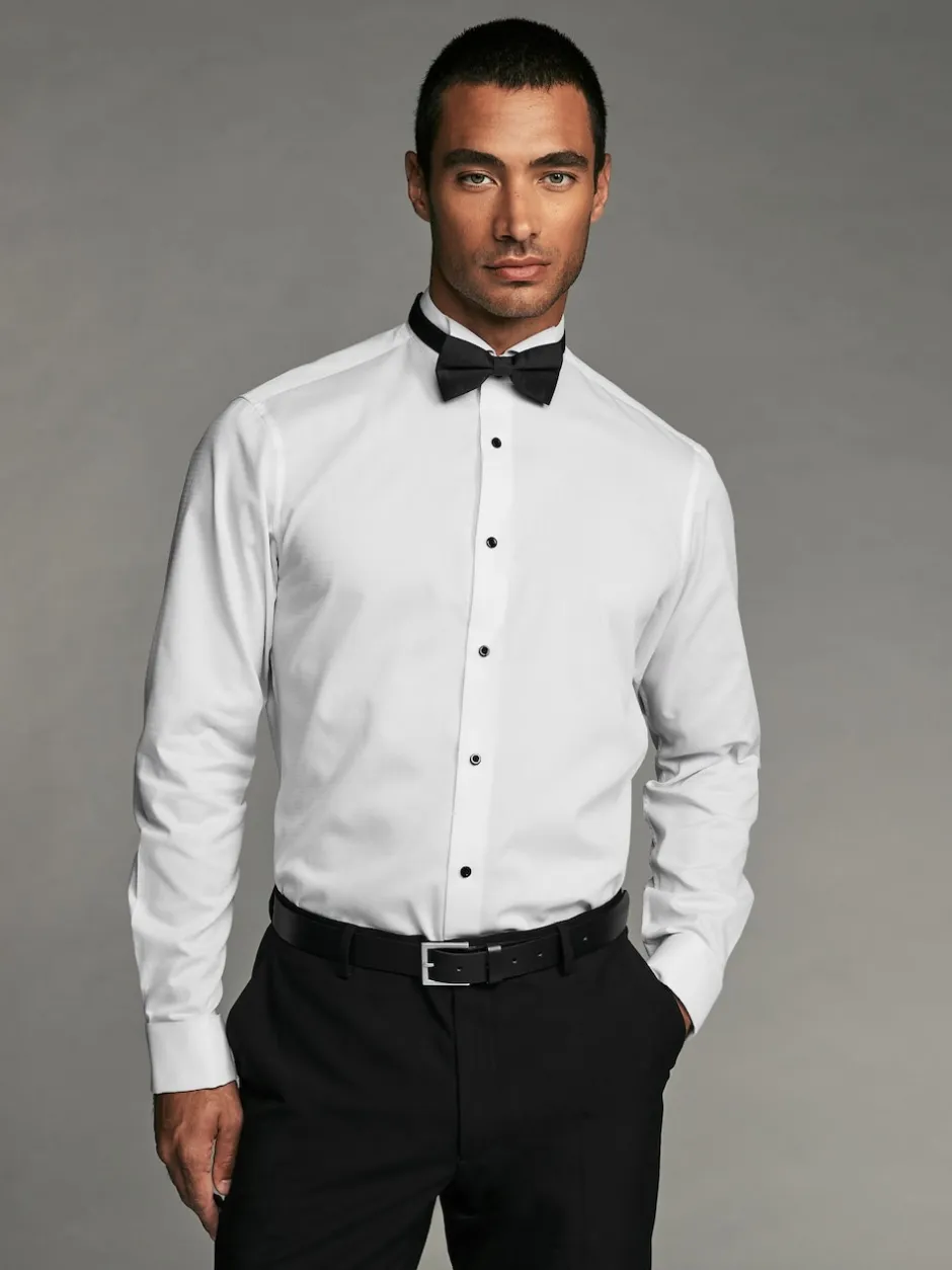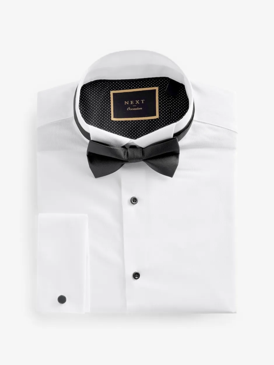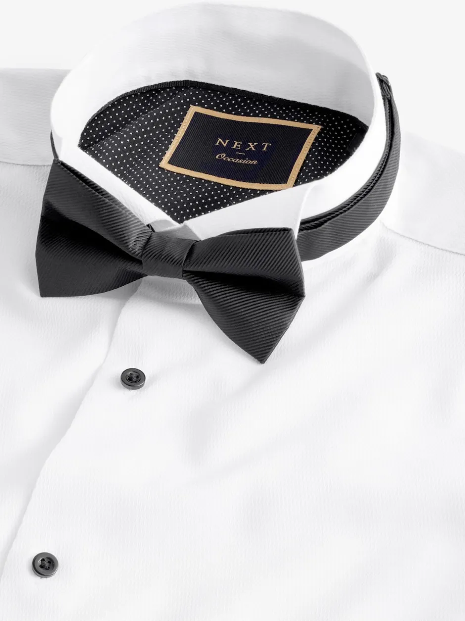 Next Blanc – Slim Fit (Slim Fit) – Textured Double Cuff Manches longues Chemises With Col cassé And Nœud papillon Lot Hot