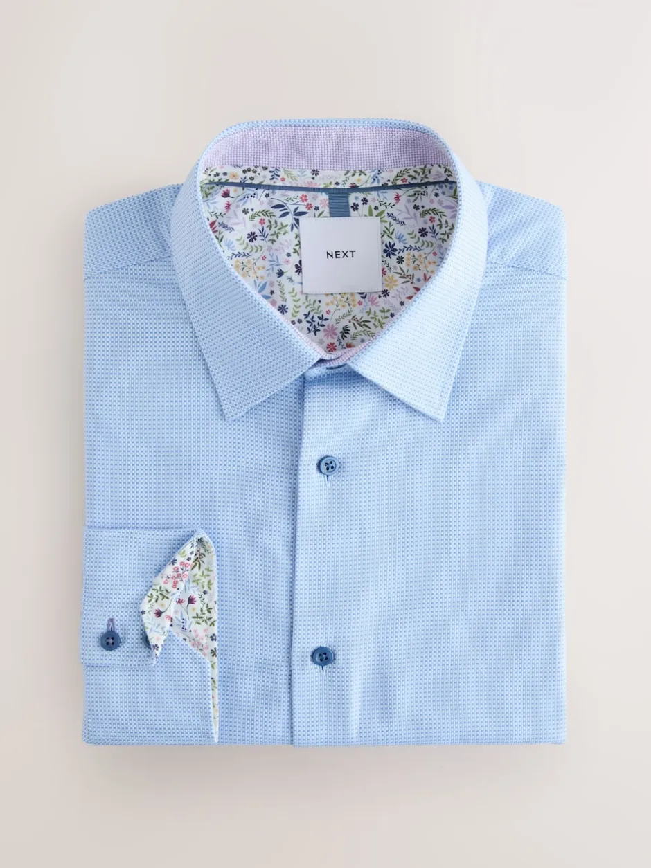 Next Bleu – Ajustement régulier – Chemise habillée texturée à manches longues avec bordure Online