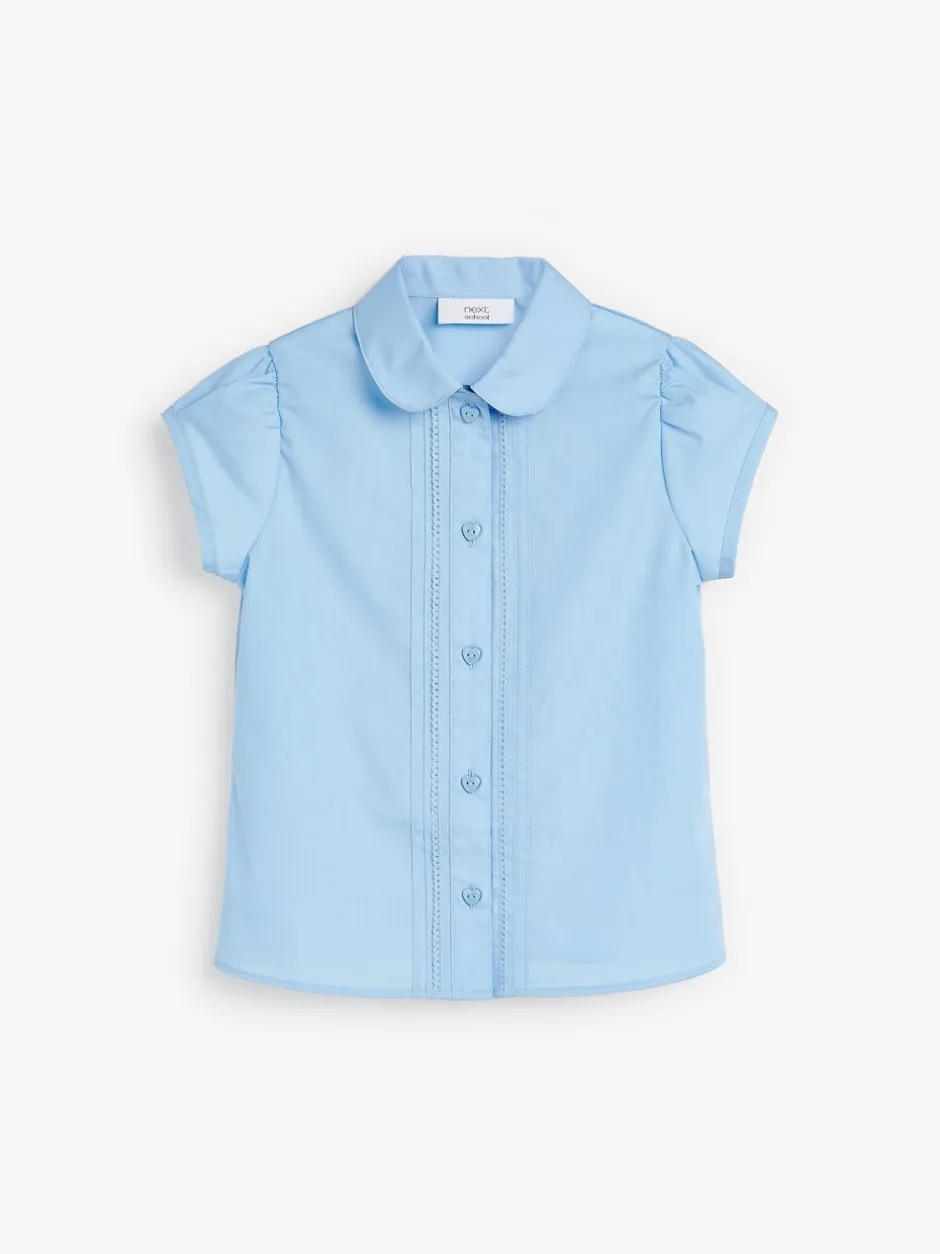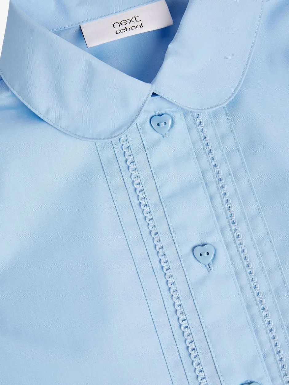 Next Bleu – Chemisier scolaire à manches bouffantes et bordures en dentelle (3-14ans)