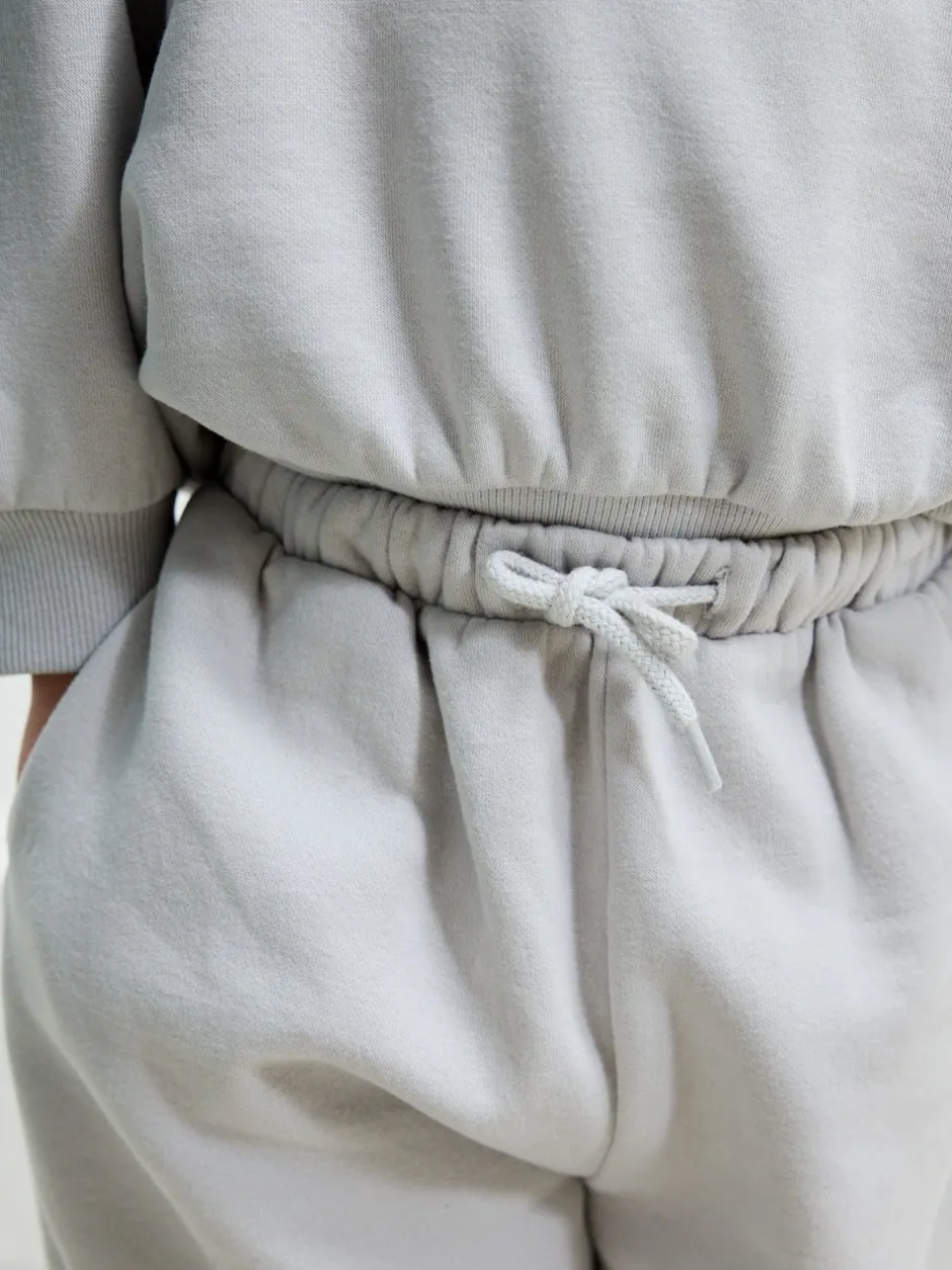 Lavable en machine. Sweat-shirt et jogging 80 % coton, 20 % polyester recyclé.