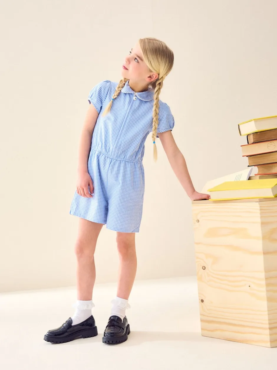 Next Bleu – Combinaison d’école Vichy en coton riche avec fermeture éclair (3-14ans) Sale