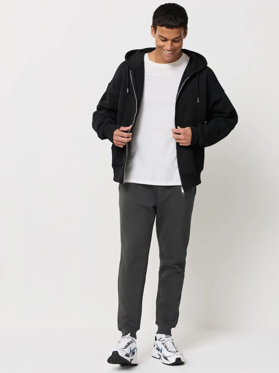 Lavable en machine. 2 x Jogging 80 % coton, 20 % Polyester recyclé.