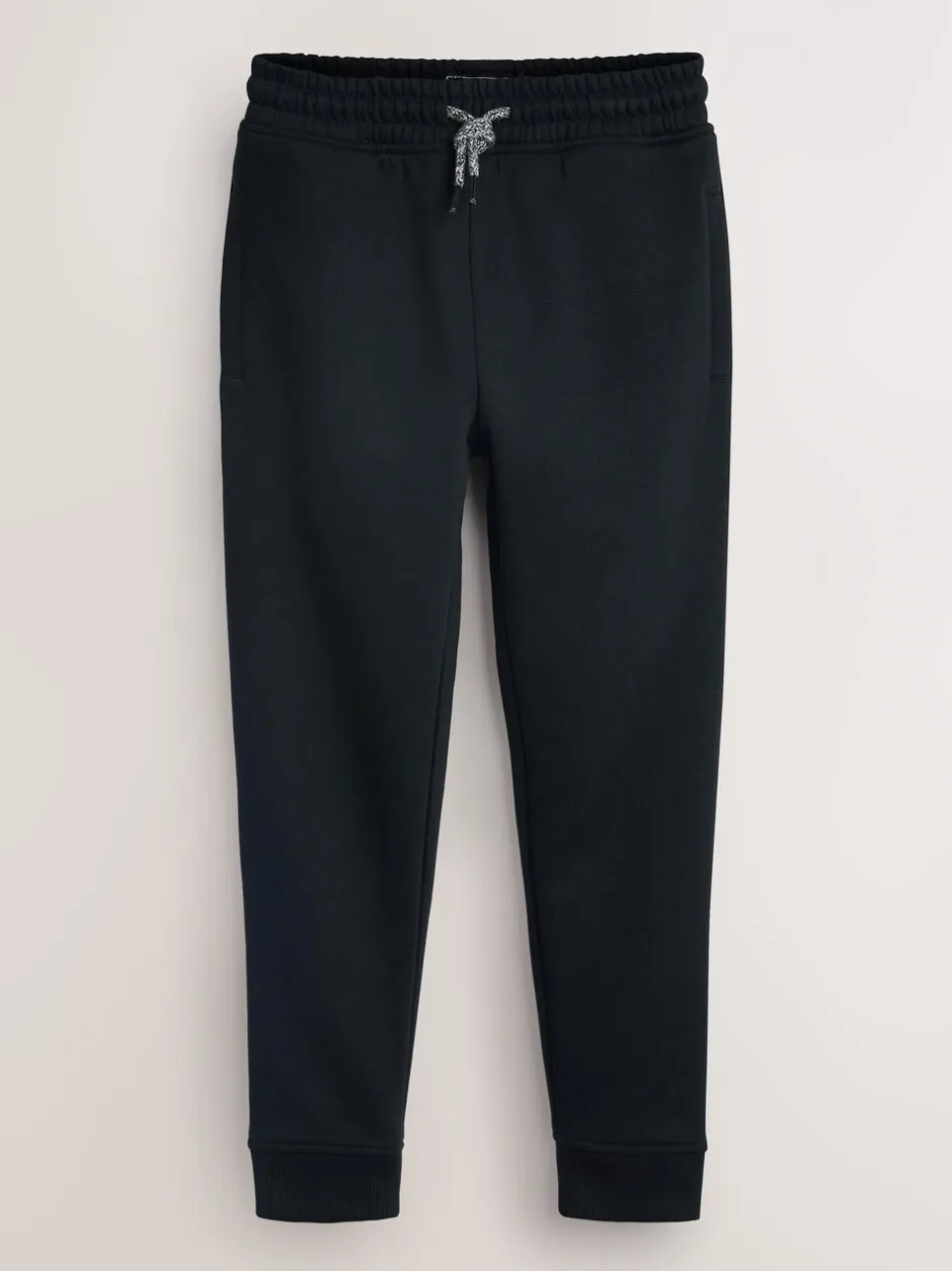 Lavable en machine. 3 x Jogging uni et jogging charbon 80 % coton, 20 % polyester recyclé. Pantalon de jogging gris chiné 70 % coton, 22 % polyester recyclé, 8 % viscose.
