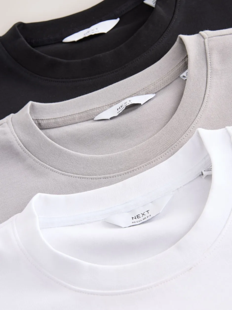 Lavable en machine. 3 x T-shirt 80% Coton, 20% Polyester recyclé.