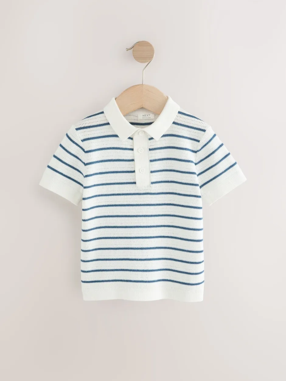 Next Bleu marine/blanc – Polos Col boutonné en maille 100% coton (3mois-7ans) Online