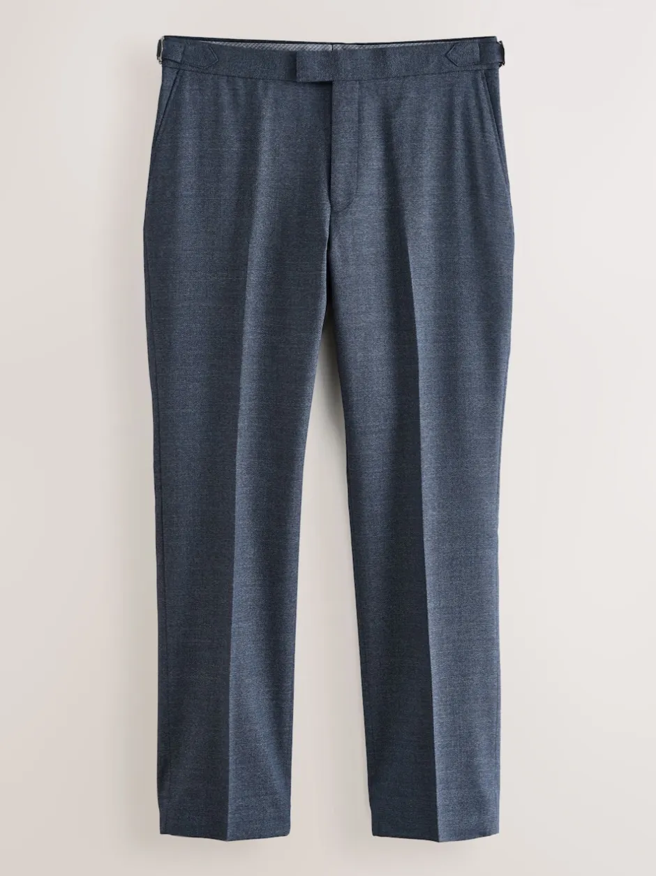 Next Bleu marine – Pantalon Signature Smart en laine italienne texturée avec pattes d’ajustement sur les côtés New