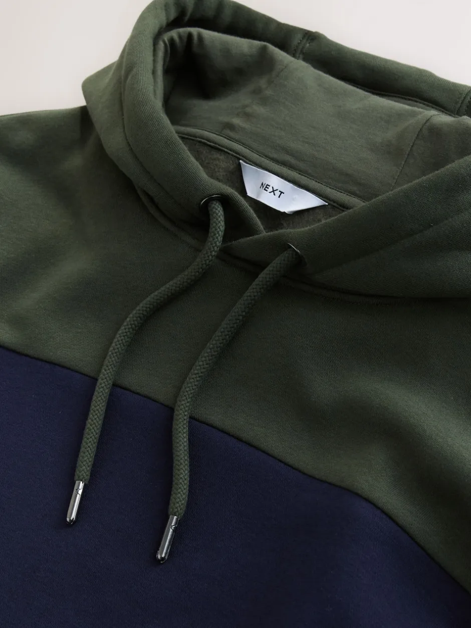 Next Bleu marine/vert kaki – Sweat à capuche à enfiler – Sweat-shirt color block Best