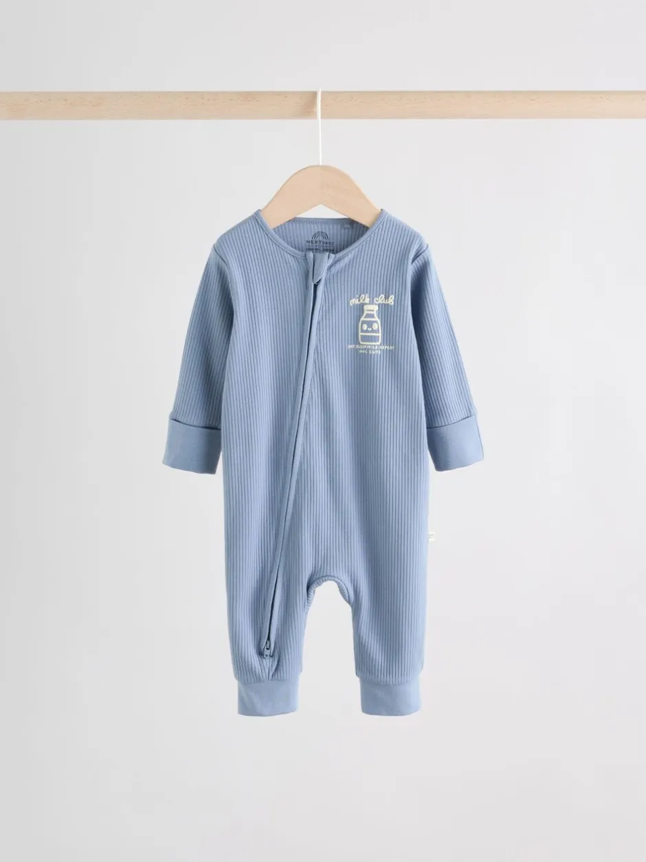 Next Blue Milk Club – Combinaisons de nuit à fermeture éclair pour bébés 3 Pack (0mths-3yrs) Clearance