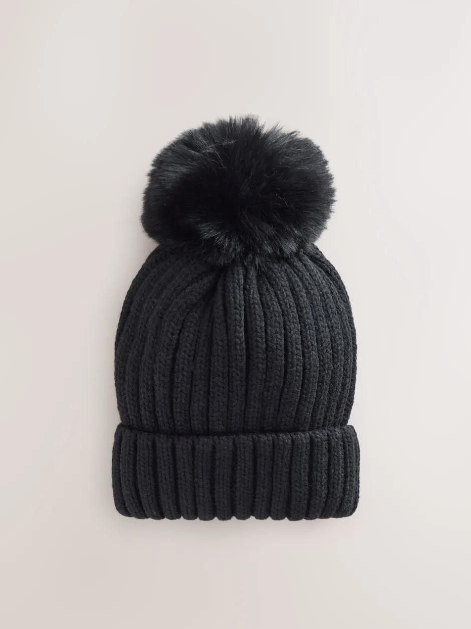 Next – Bonnet côtelé à pompon (3mois-16ans) Noir Hot