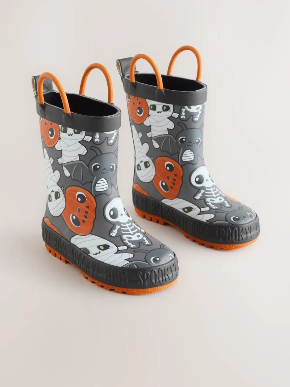 Next – Bottes de pluie à poignée Noir/Orange Halloween