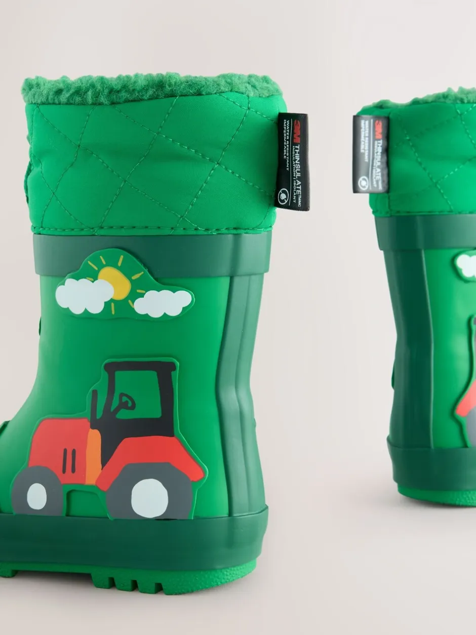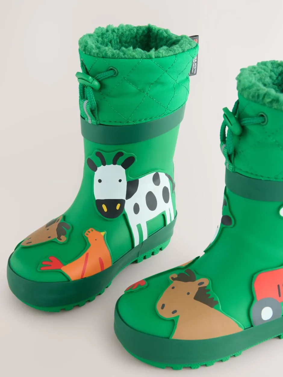 Next – Bottes en caoutchouc thermique Thinsulate™ avec extrémité doublée Animaux de ferme verts New
