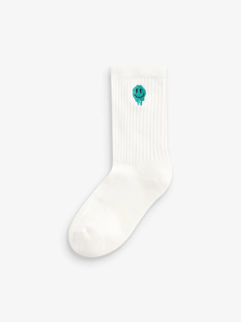 Next Broderies de visage souriant – Lot de 5 paires de chaussettes côtelées Sport Clearance