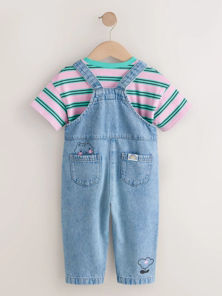 Next Chat Bleu Milieu – Salopettes en Denim imprimées (3mois à7ans) Clearance