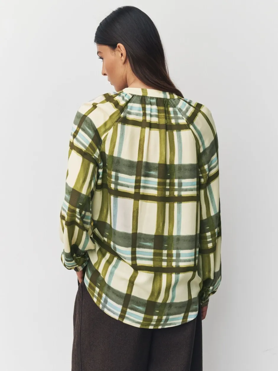 Next – Chemisier manches longues à col V Carreaux vert/écru Hot