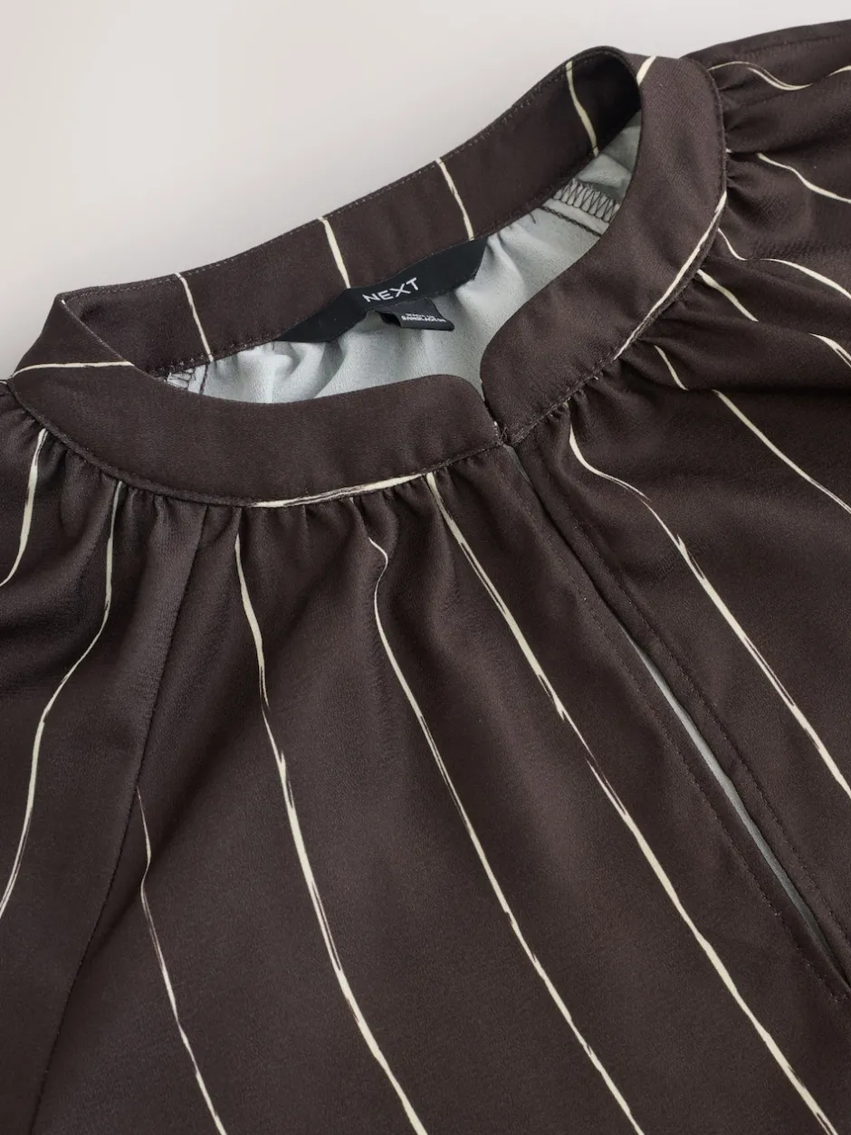 Next – Chemisier manches longues à col V Marron chocolat rayé