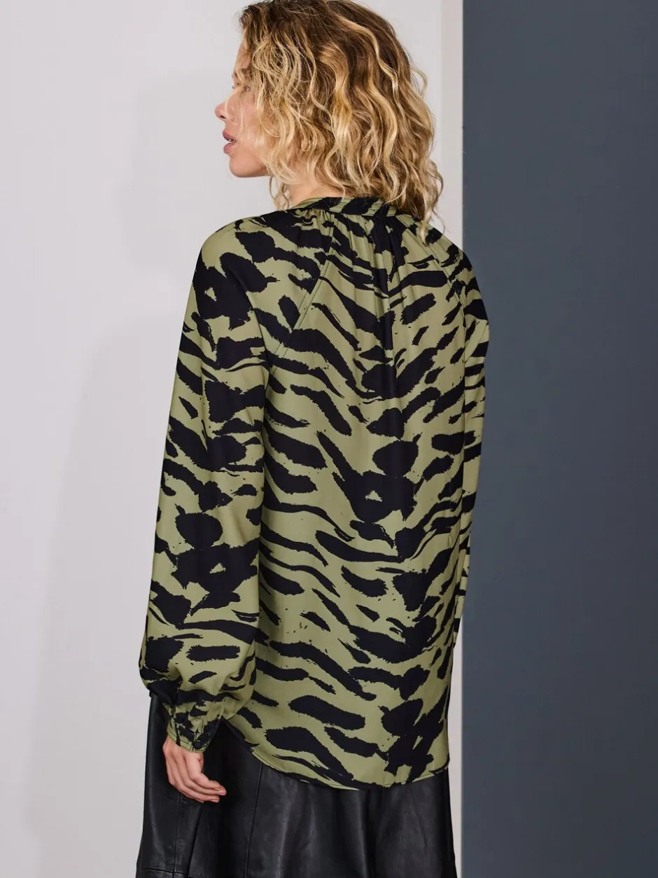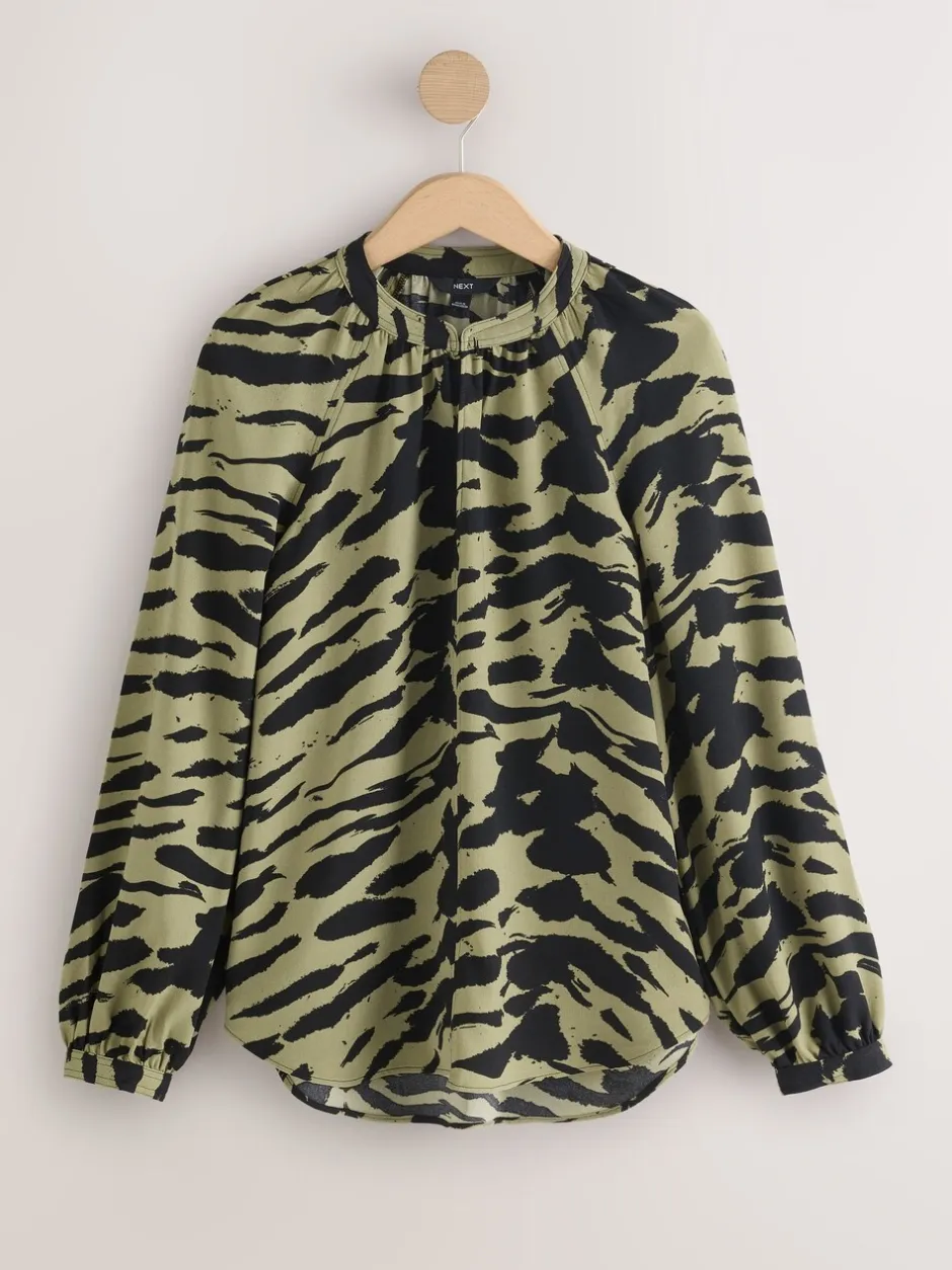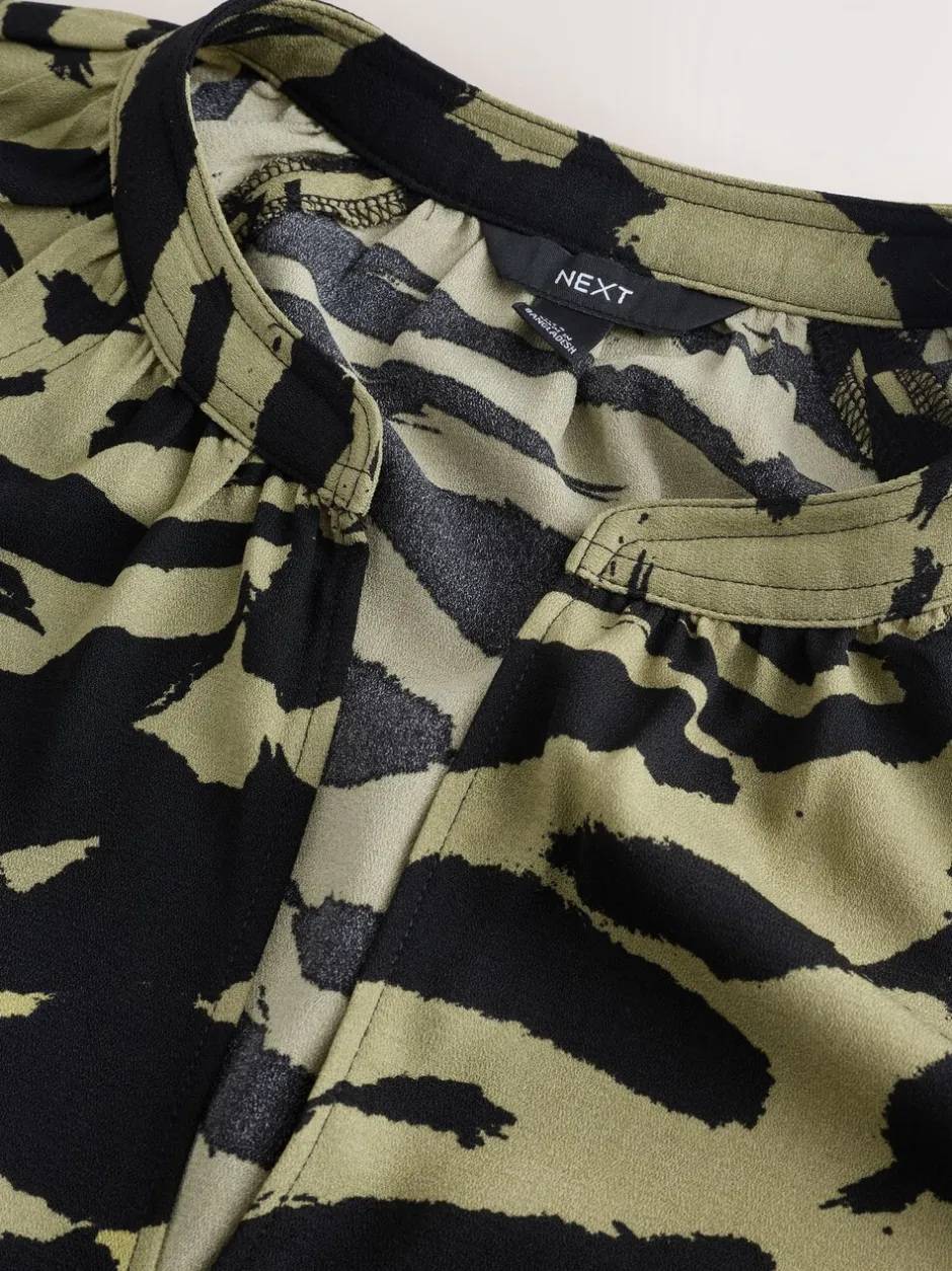 Next – Chemisier manches longues à col V Vert kaki à imprimé animal Online