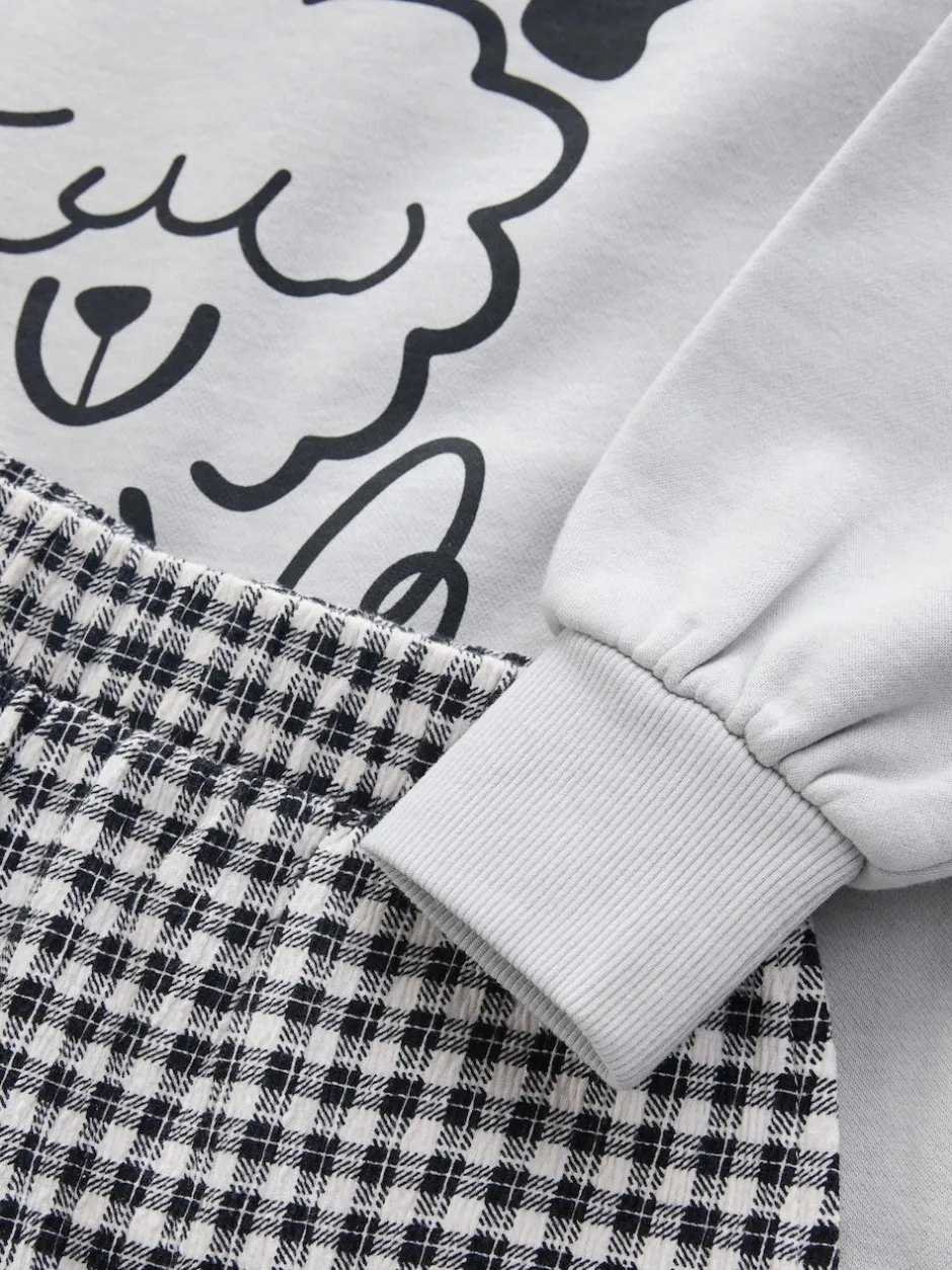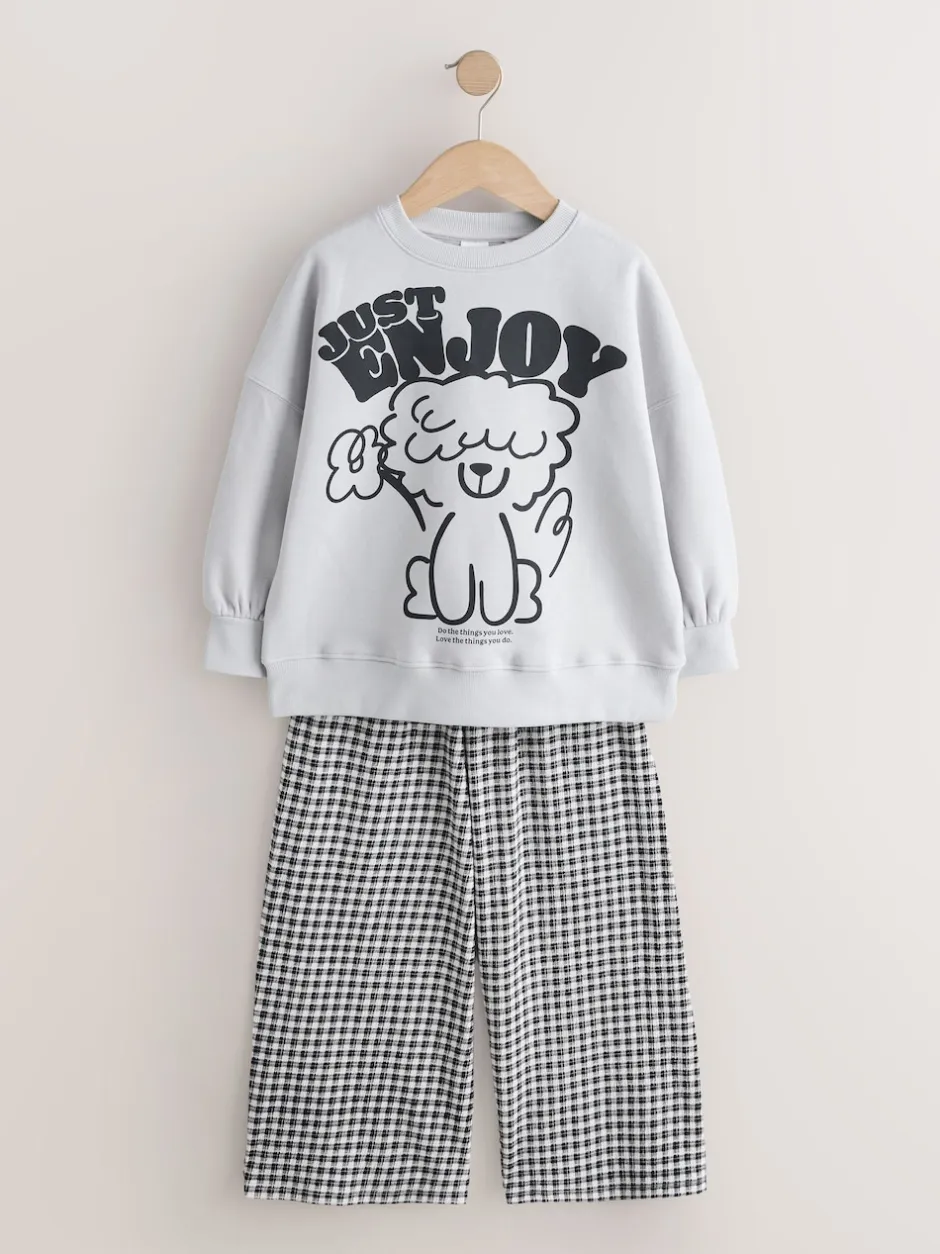 Next Chien gris/vichy – Ensemble Sweat-shirt et Pantalons Jambe large (3-16ans)