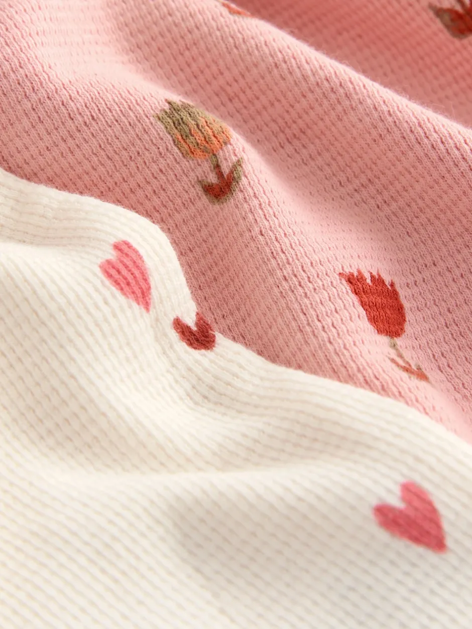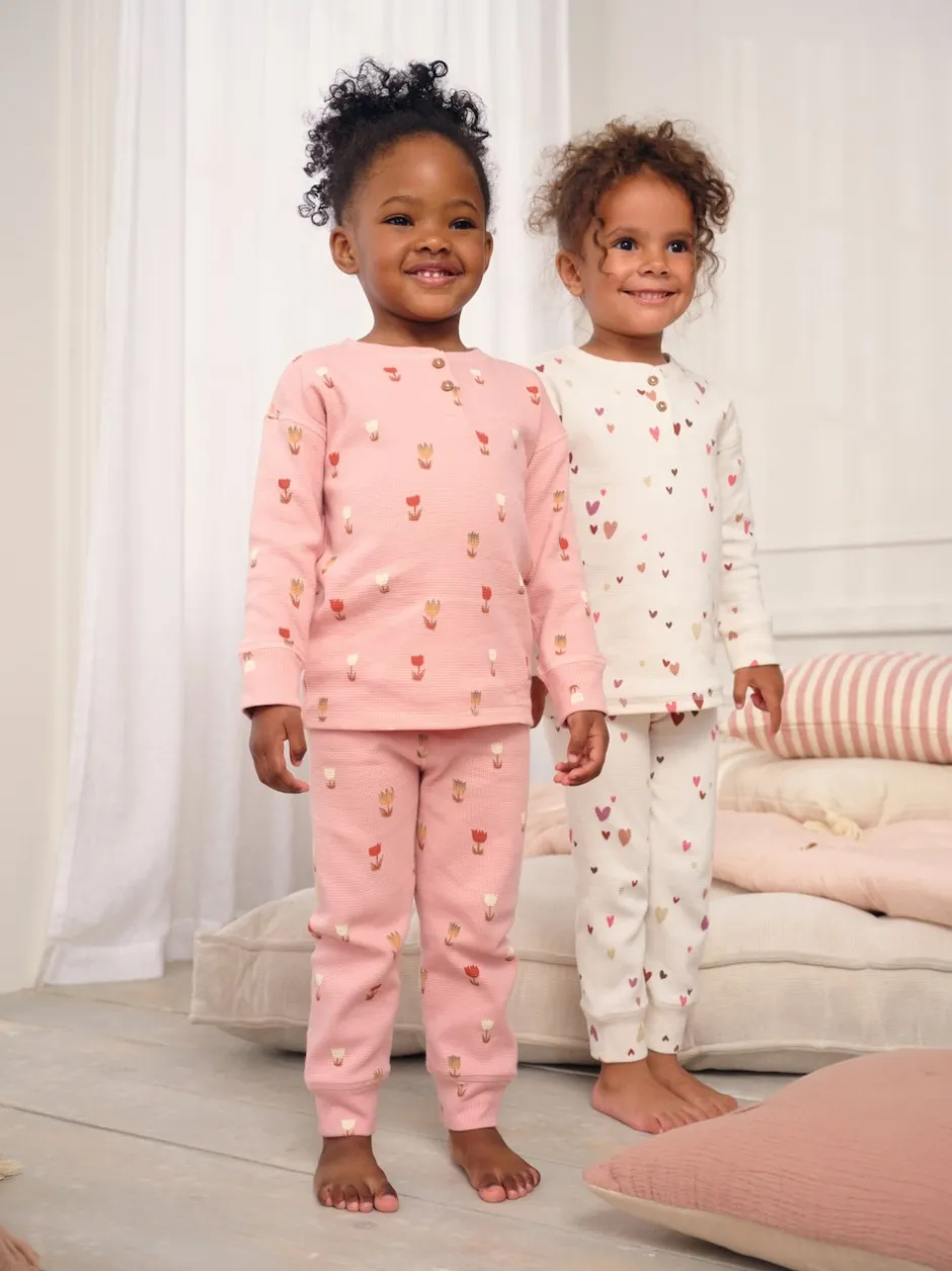 Next Cœurs écru/rose – Lot de 2 pyjamas gaufrés (9mois à12ans) Sale