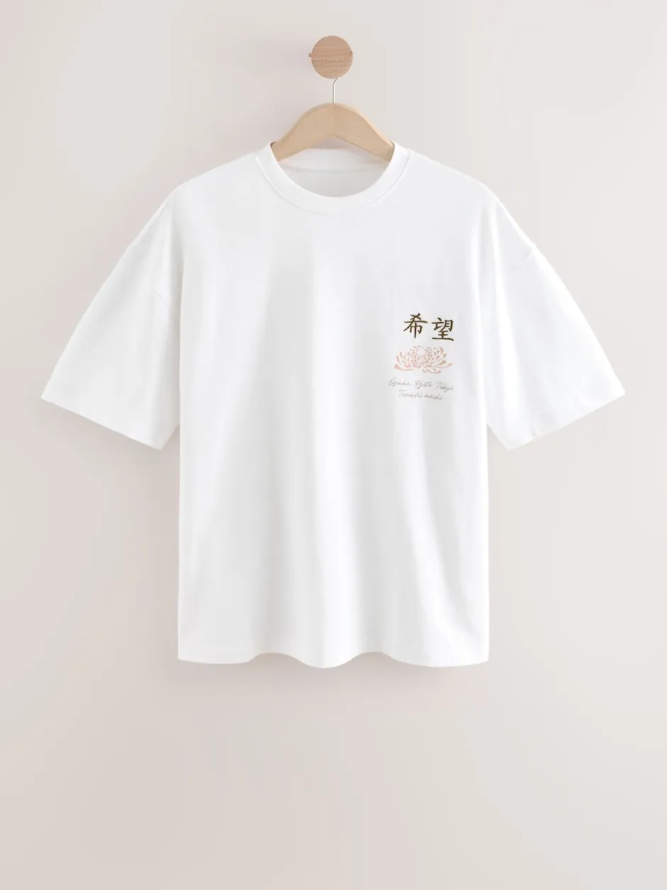 Next – Coupe ample – T-shirt épais à imprimé graphique Blanc Japon Hot