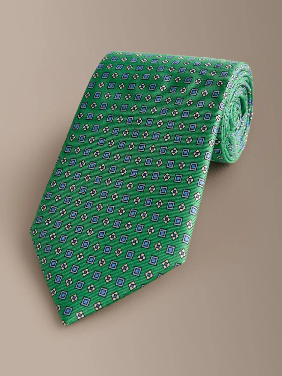 Next – Cravate géométrique en soie Signature italienne Vert vif Discount