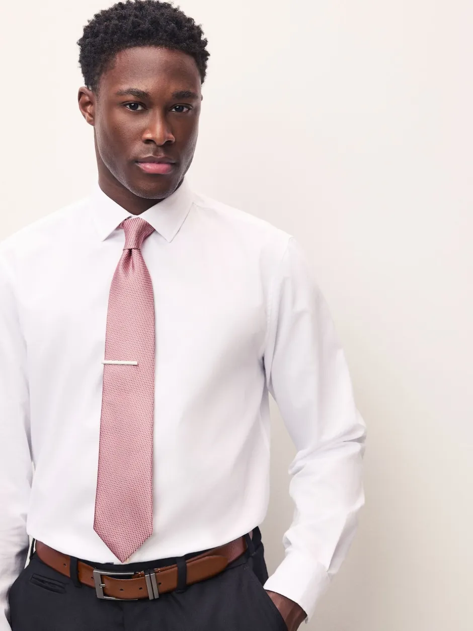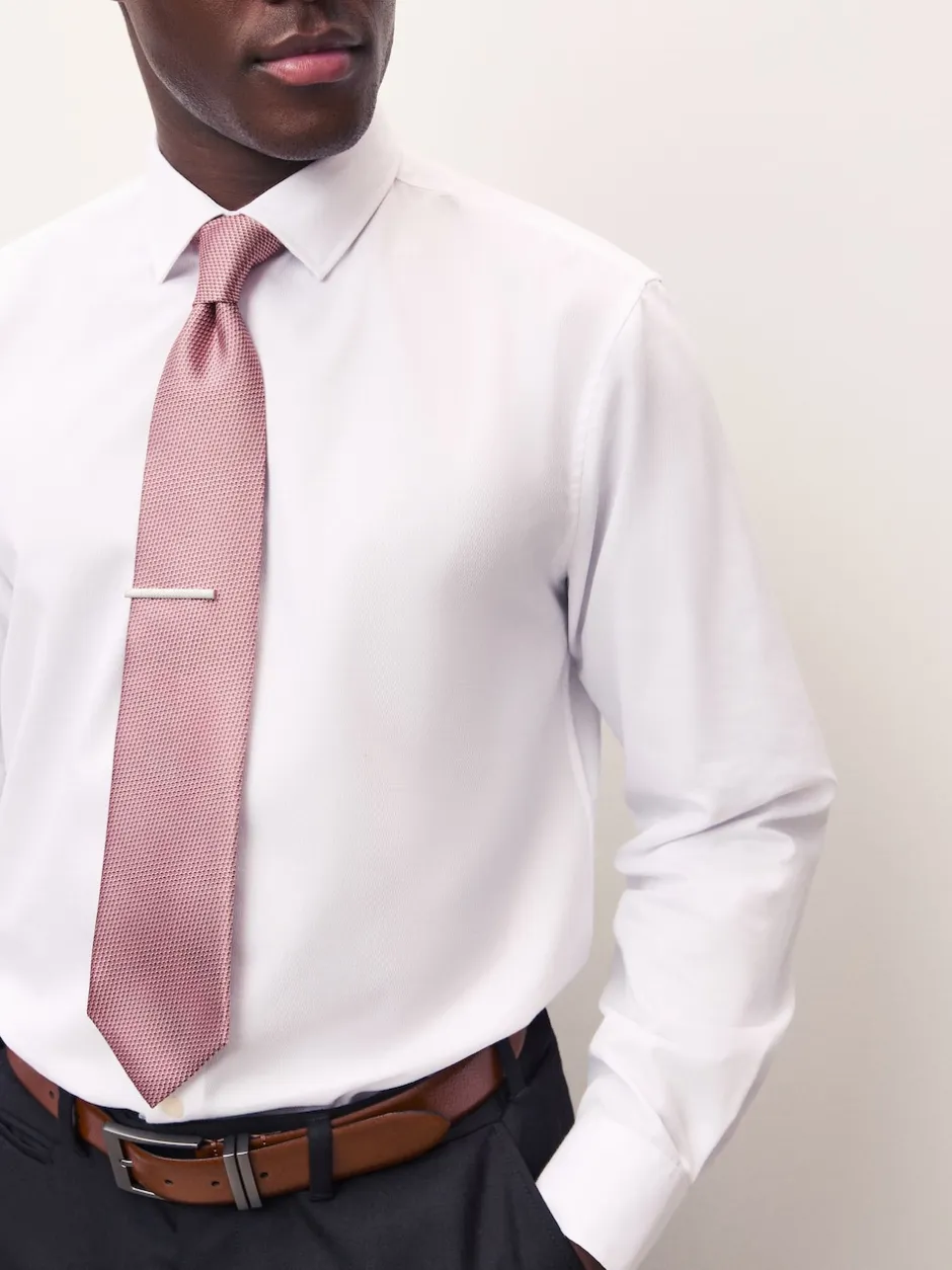 Next – Cravate texturée avec pince à cravate Rose corail New