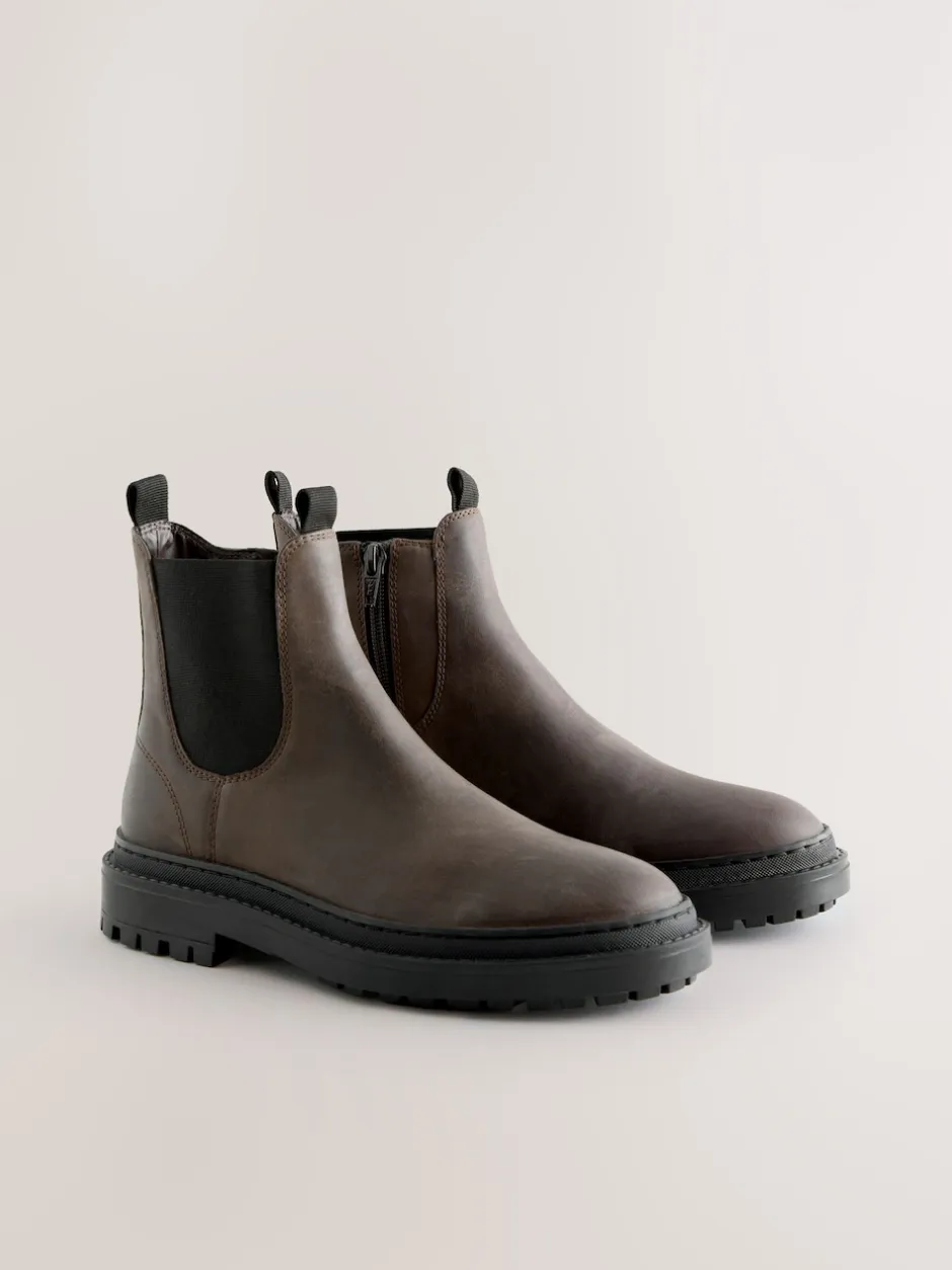 Next Cuir huilé marron chocolat – Chelsea Bottes/Bottines Forever Comfort® à bout rond Hot