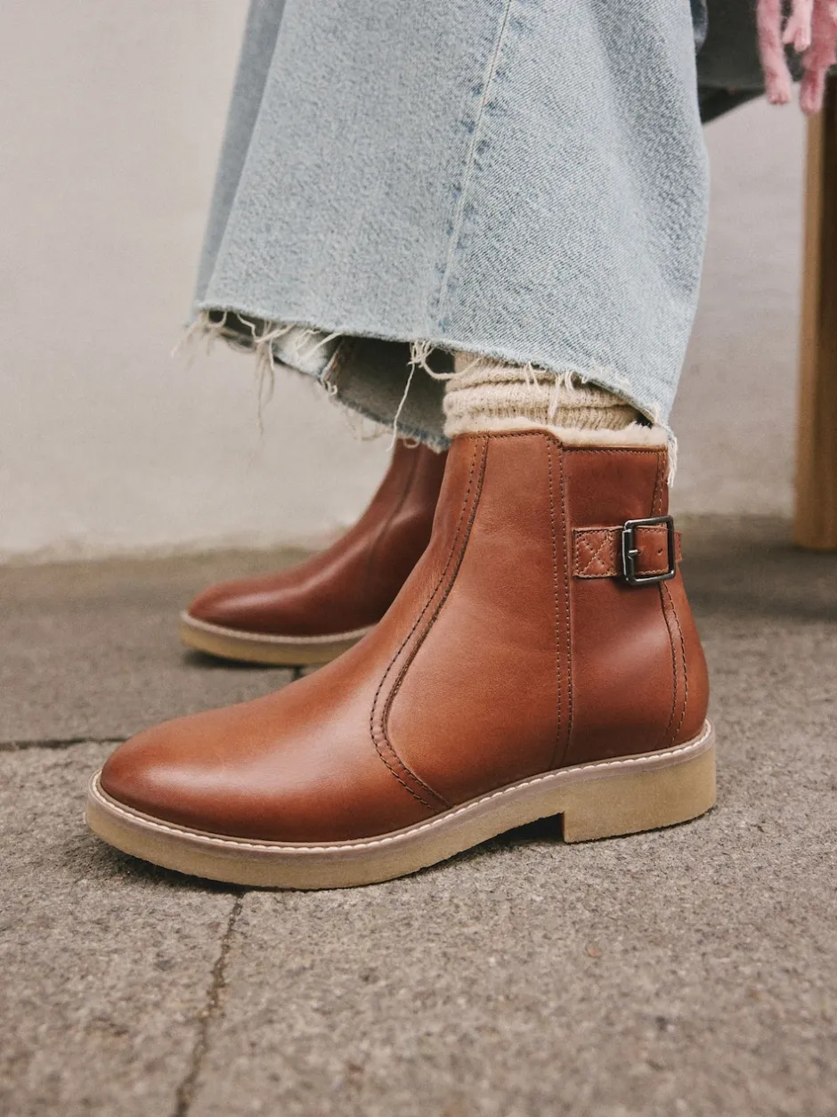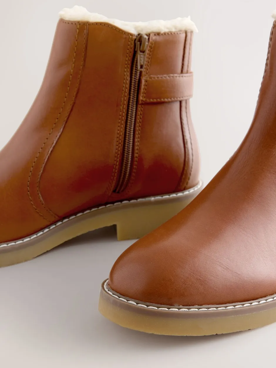 Next Cuir marron fauve – Bottes Forever Comfort® doublées de fausse fourrure avec boucle Discount