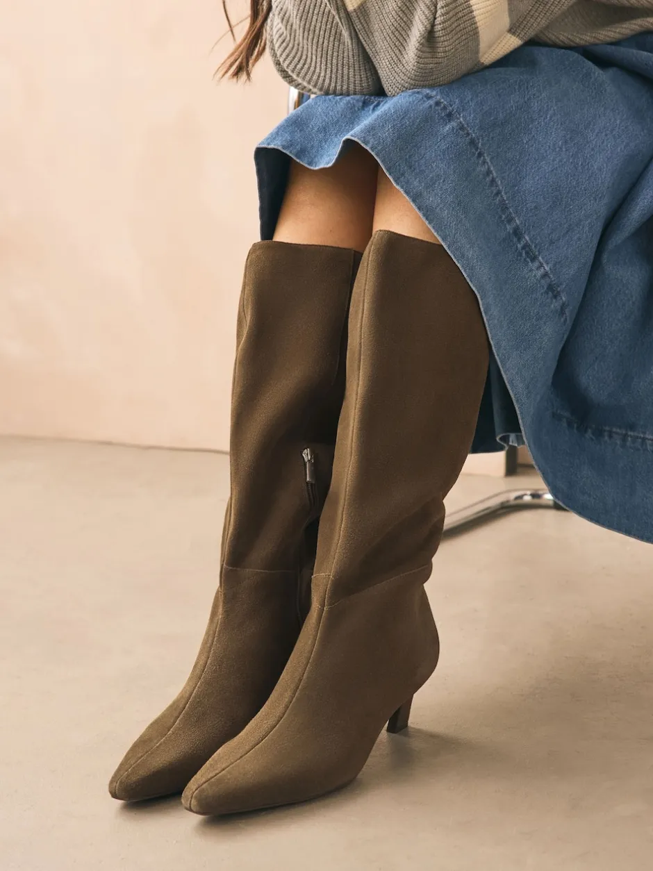 Next Daim vert kaki – Bottes à talons Forever Comfort® à bout pointu New