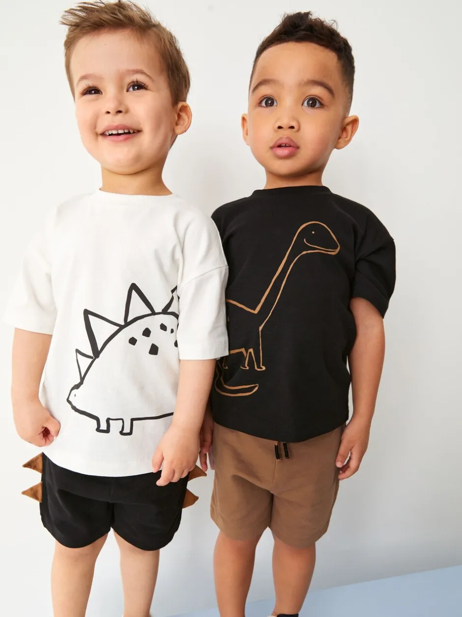 Next Dinosaure noir/beige – Ensemble t-shirt et short à manches courtes Lot de 2 (3mois à7ans) (3mois à7ans) New