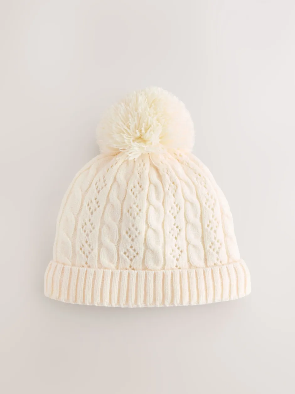 Next écru – Chapeau à pompons en maille torsadée pointelle (0mois-2ans) New