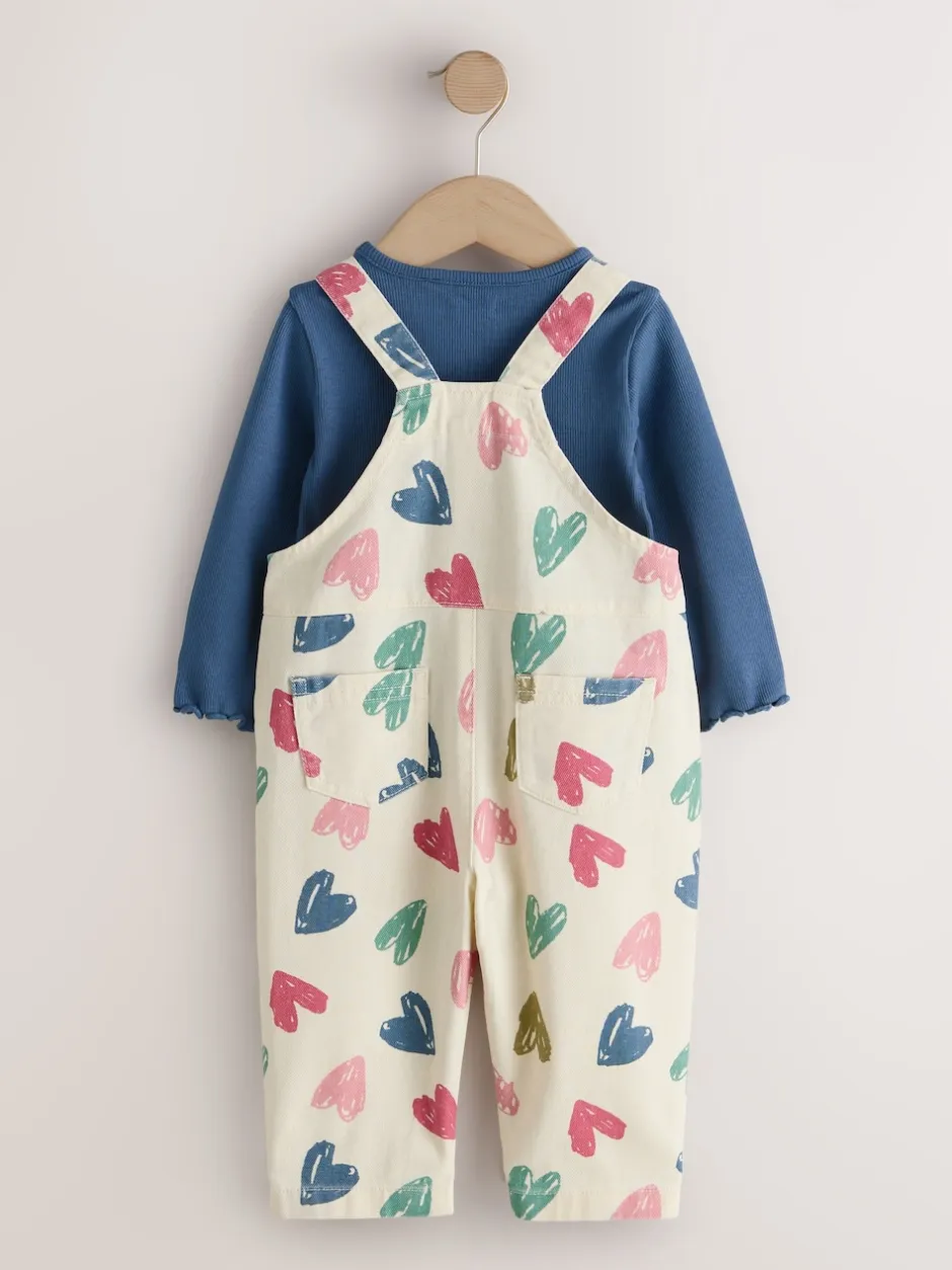Next écru – Ensemble salopette et t-shirt à imprimé cœur (3mois7ans) Outlet