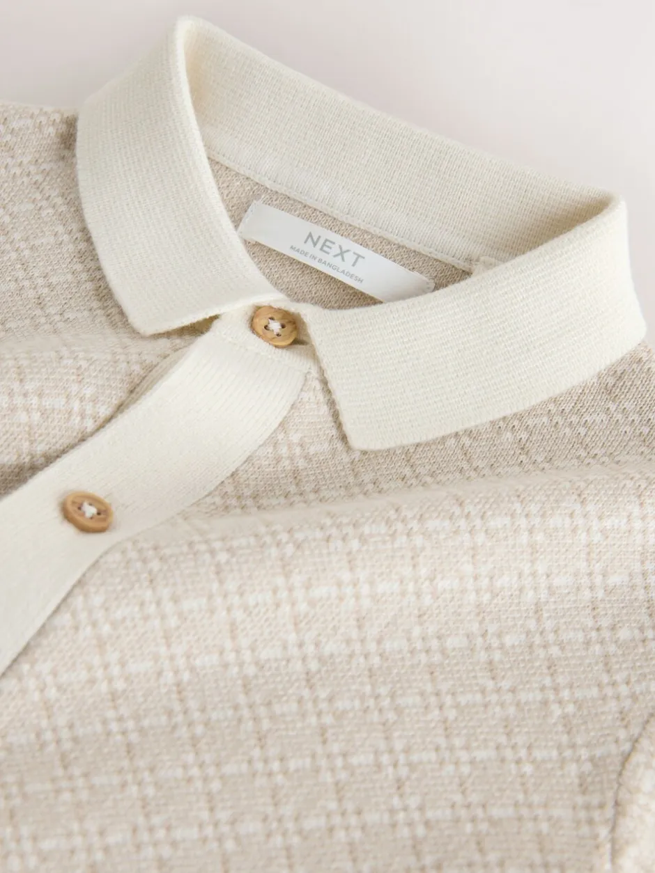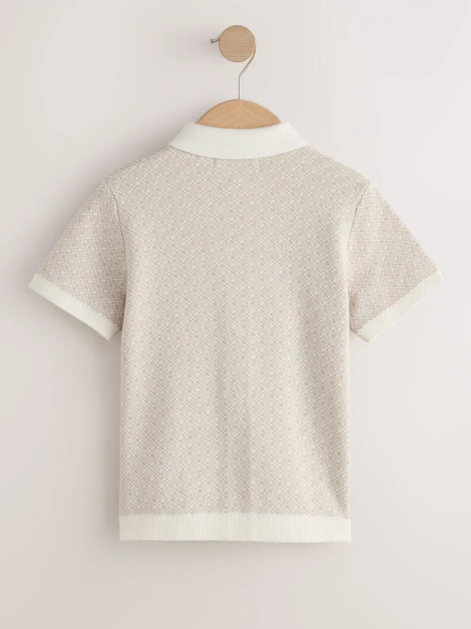 Next Écru motif géométrique – Polo boutonné en maille (3-16ans) Discount