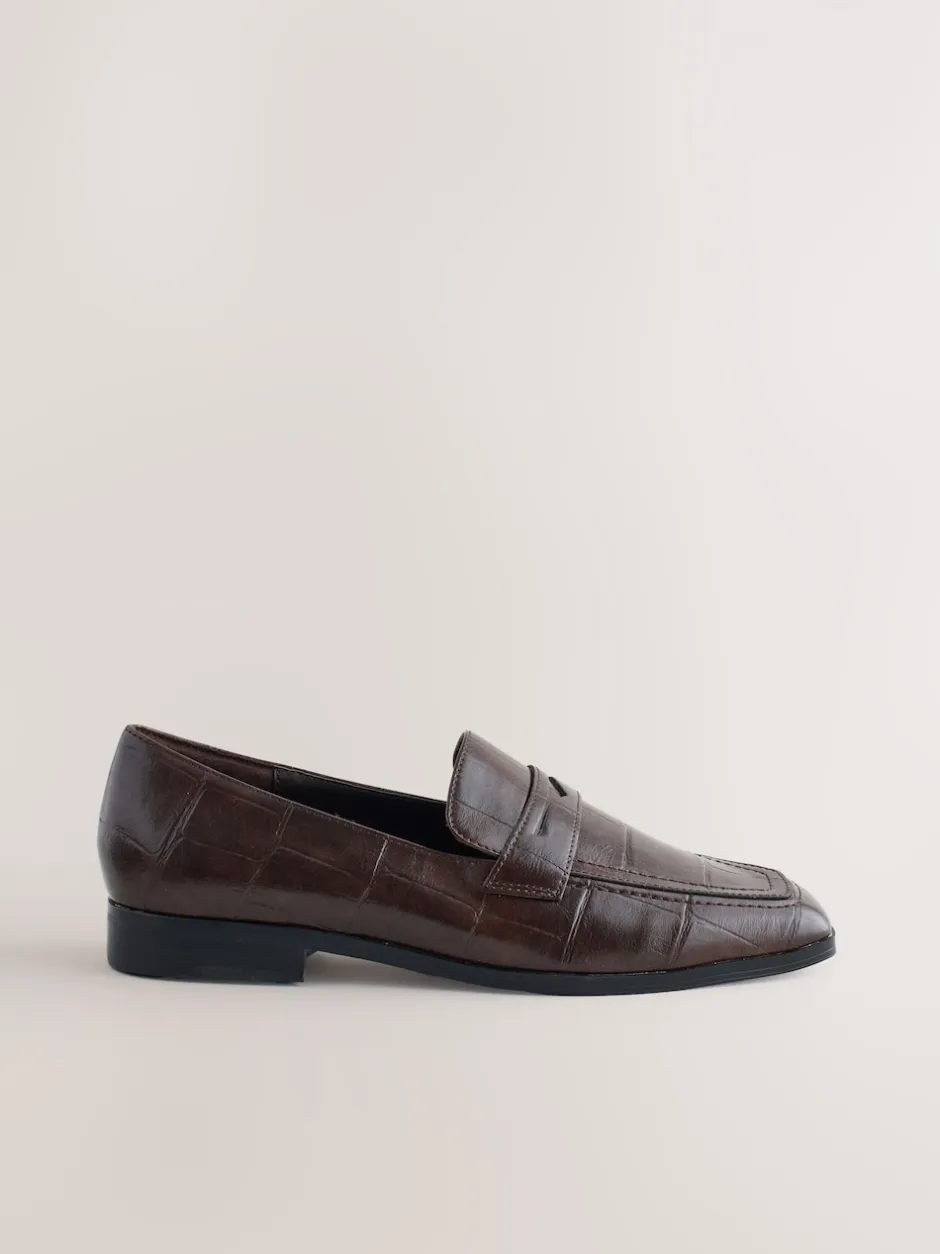 Next Effet croco Marron chocolat – Mocassins Forever Comfort® à bout carré