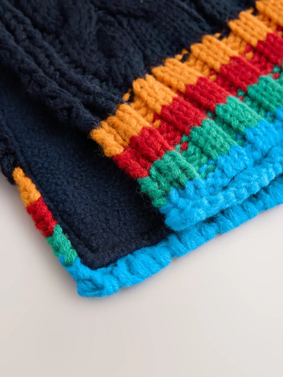 Next – Ensemble chapeau, écharpe et gants 3 pièces (3-16ans) Bleu marine avec côte arc-en-ciel Best