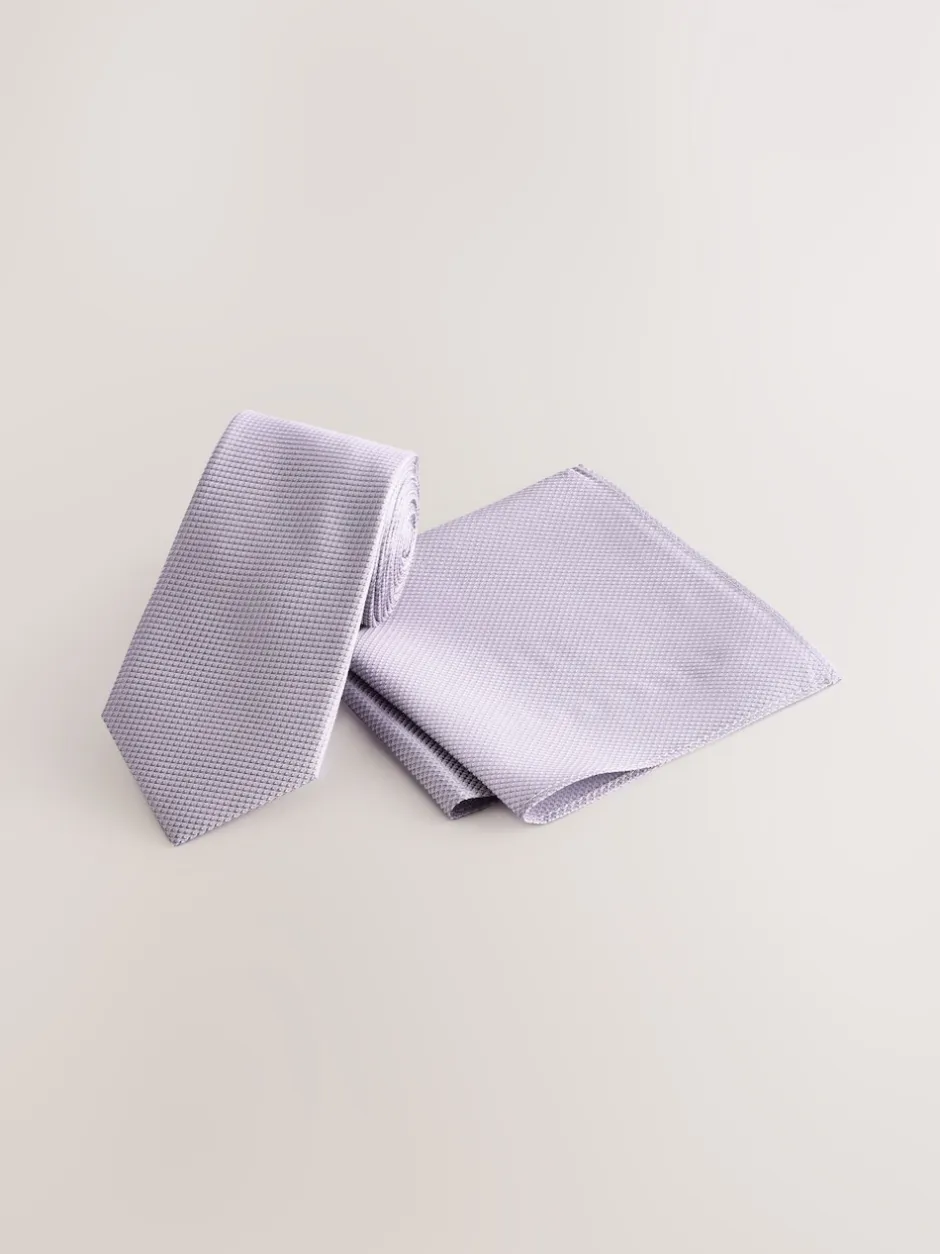 Next – Ensemble cravate et pochette texturées lilas New
