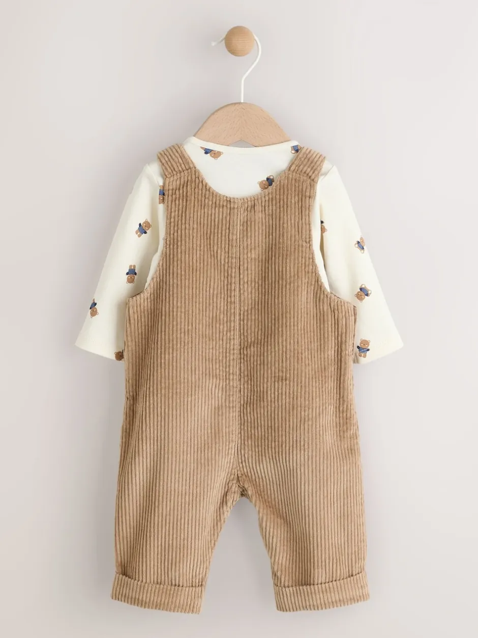 Next – Ensemble salopette et body en velours côtelé (0mois-2ans) Fauve à motif ours marron